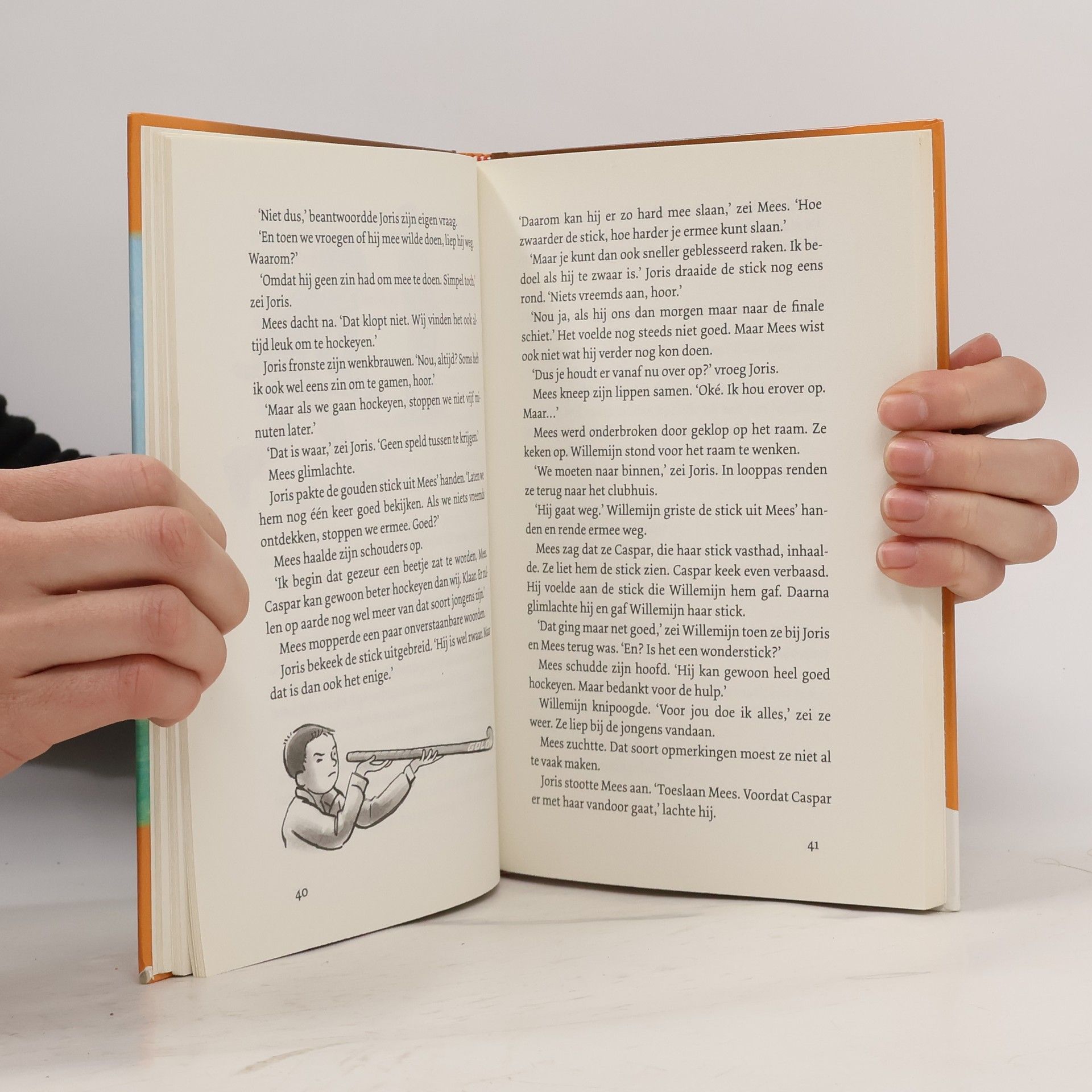 "Mees is een van de beste spelers van zijn hockeyteam. Dan komt er een nieuwe jongen bij. Casper speelt de sterren van de hemel met zijn gouden hockeystick. Mees is bang dat Casper zijn plaats in de spits inpikt. Hoewel...de ene keer speelt Casper supergoed, dan weer speelt hij juist slecht. De trainer denkt dat Mees jaloers is. Maar Mees weet wel beter. Er klopt iets niet! Hij gaat op onderzoek uit..." -- Back cover.