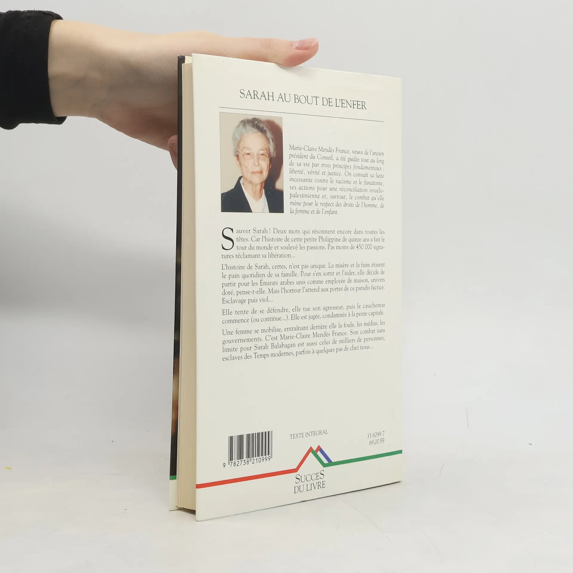 Jeune philippine employée de maison dans un émirat arabe, Sarah est violée par son employeur et le tue à coups de couteau. Sa condamnation à mort provoque des réactions dans le monde et la naissance d'un comité de défense présidé par l'auteur. La jeune fille est finalement libérée après un an de prison, en juillet 1996. L'auteur raconte ce drame et celui de tous ces esclaves des temps modernes.