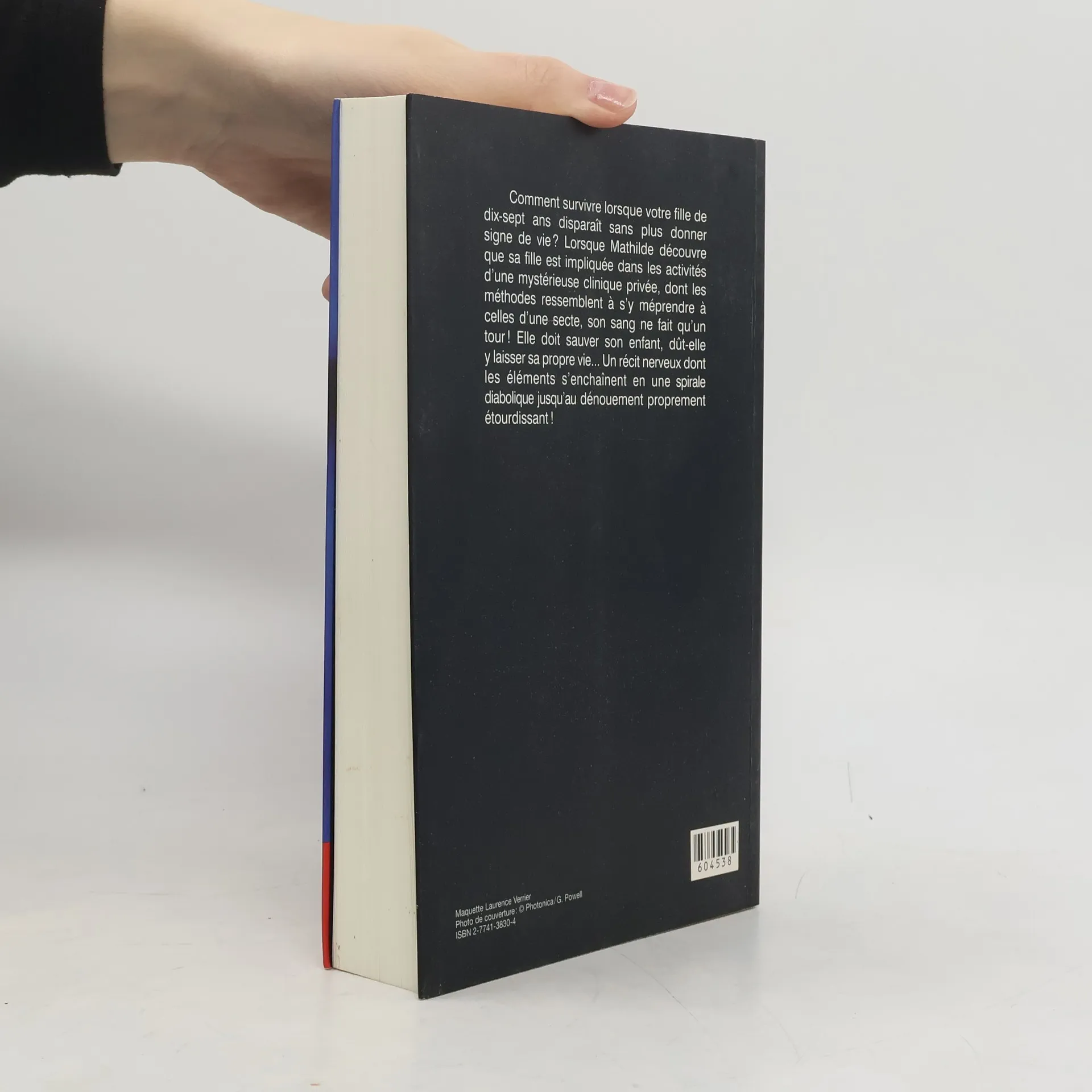 Comment survivre lorsque votre fille de 17 ans disparaît sans plus donner signe de vie? Lorsque Mathilde découvre que sa fille est impliquée dans les activités d'une mystérieuse clinique privée, dont les méthodes ressemblent à s'y méprendre à celles d'une secte, son sang ne fait qu'un tour! Elle doit sauver son enfant, dût-elle y laisser sa propre vie... Un récit nerveux dont les éléments s'enchaînent en une spirale diabolique jusqu'au dénouement proprement étourdissant!