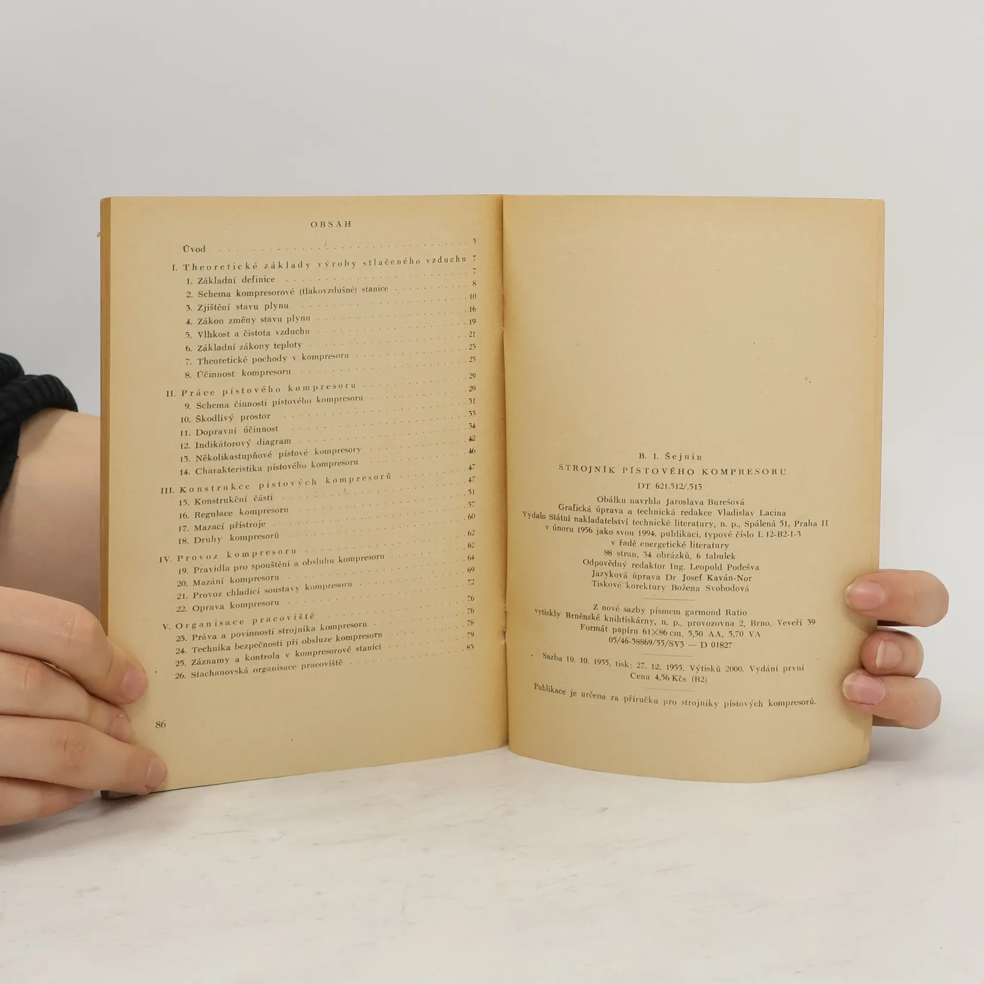 Příručka, určená strojníkům kompresorů, vysvětluje theorii kompresorů, jeho práci i zařízení. Uvádí dále pravidla pro obsluhu, údržbu i opravy a pokyny pro správnou organisaci pracoviště strojníka. Z ruského originálu "Mašinist poršnevogo kompressora" přeložil František Měchura.