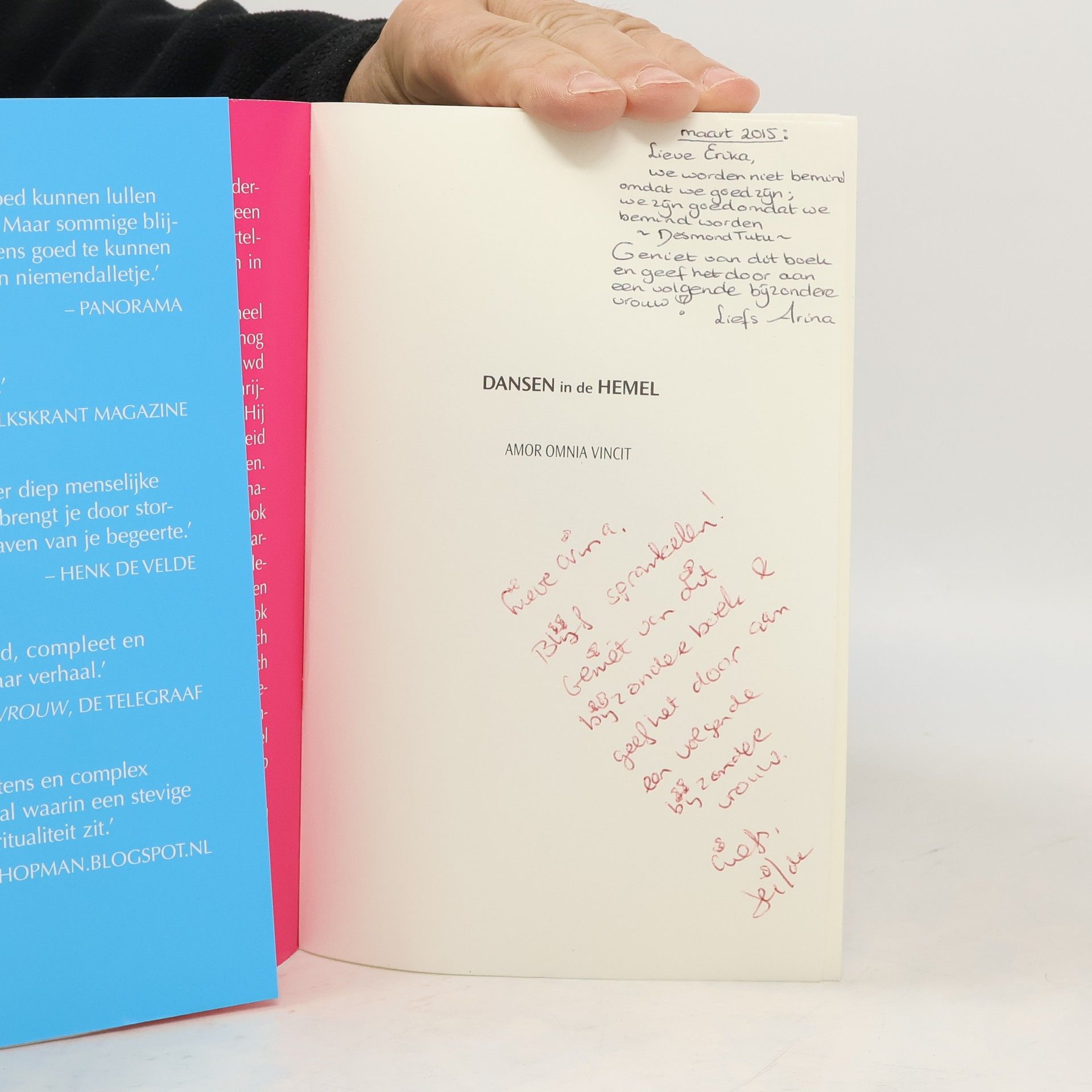 DANSEN IN DE HEMEL is het aangrijpende verhaal over twee mensen die worstelen met liefde en dood in een decor van glamour, geldwolven en grootheidswaan. Een actuele roman over verlangen, geld, geluk en echte liefde. Een zoektocht naar onze eigen waarheid. Mishka Kamadev is een romanticus met een te groot verlangen naar passie, roem en rijkdom. Voor de buitenwereld leidt hij een glamourbestaan, maar zijn innerlijk raakt verscheurd. Het ene moment is hij The God of House Music in het nachtleven, het andere moment is hij verzorger van zijn ongeneeslijk zieke vrouw. Mishka zoekt vergetelheid in drank en pillen, stort zich in een affaire met de hartsvriendin van zijn vrouw, en op de beurs verliest hij zijn fortuin. En dan overvalt zijn oude jeugdliefde hem met een verbijsterende mededeling. Hoe legt hij alles uit aan zijn stervende vrouw?