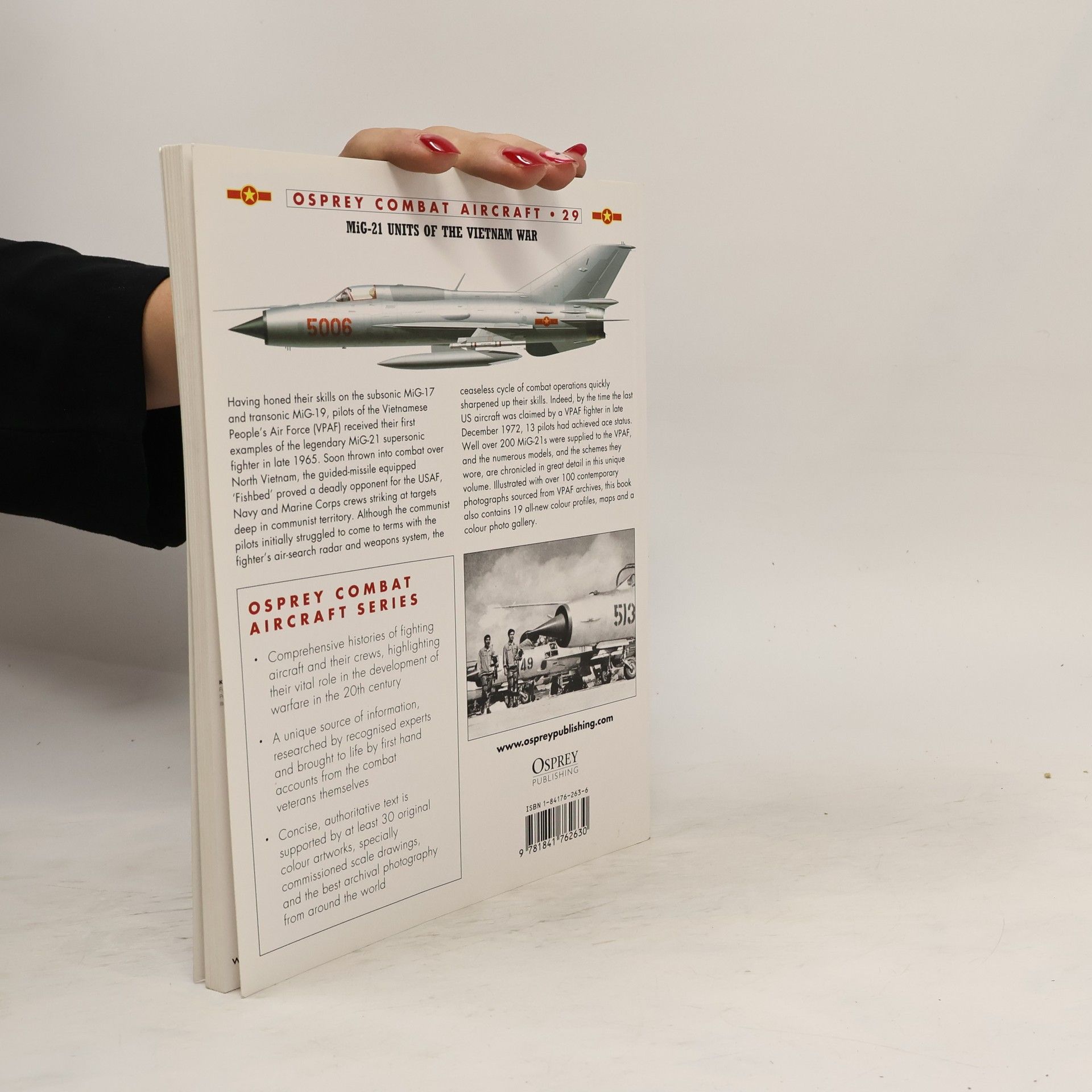 Osprey's study of the use of MiG-21 Units in the Vietnam War (1955-1975). Having honed their piloting skills on the subsonic MiG-17 and transonic MiG-19, the Vietnamese Peoples' Air Force (VPAF) received their first examples of the legendary MiG-21 supersonic fighter in 1966. Soon thrown into combat over North Vietnam, the guided-missile equipped MiG-21 proved a deadly opponent for the USAF, Navy and Marine Corps crews striking at targets deep into communist territory. Most of the VPAF's 12+ aces scored their bulk of their kills in the MiG-21, which was then the best fighter produced by Russia's premier fast jet manufacturer, Mikoyan Gurevich. Well over 200 MiG-21s were supplied to the VPAF, and the numerous models and the schemes they wore are chronicled in great detail in this unique volume.