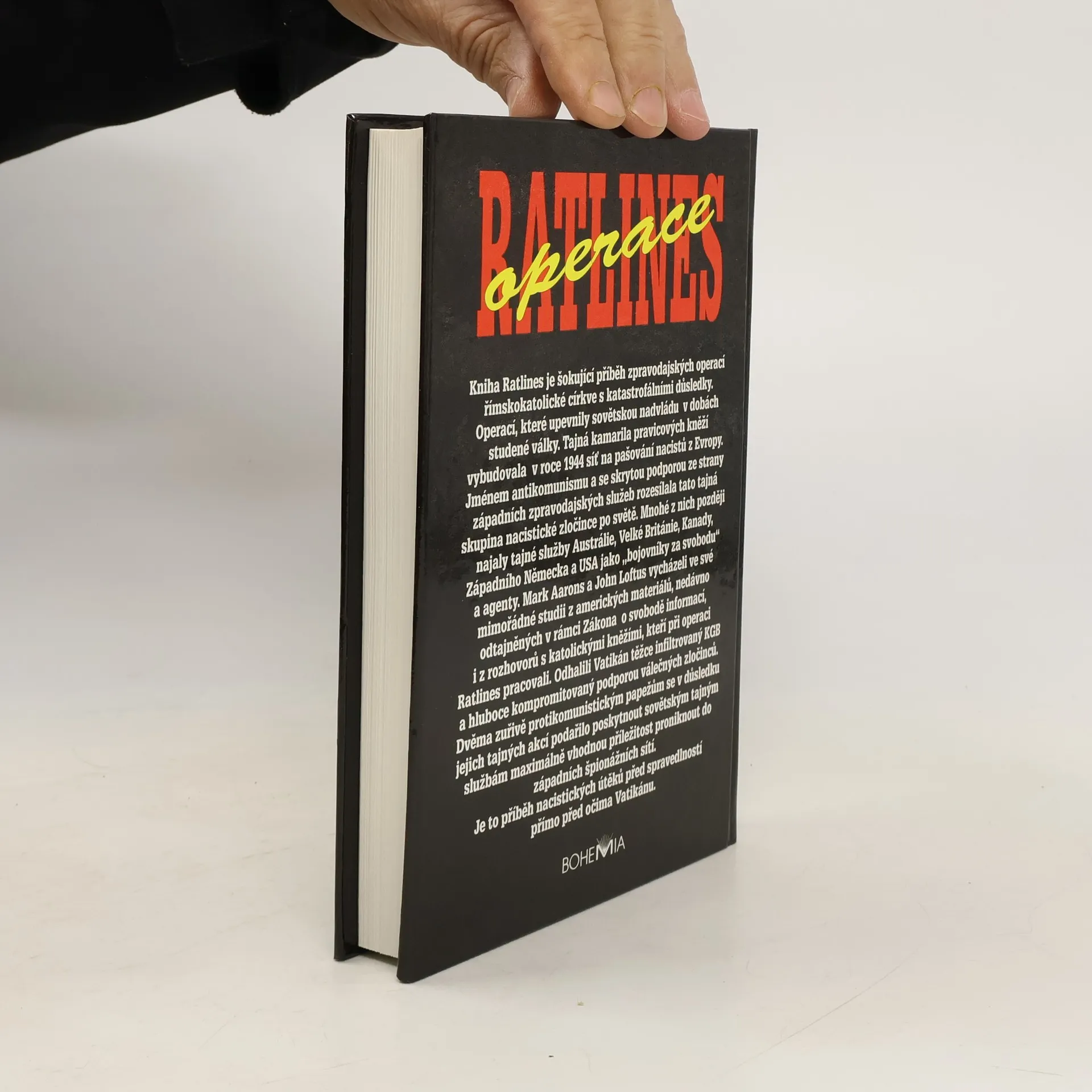 Šokující fakta o nacistických sítích upředených Vatikánem a vyzrazených západními zpravodajskými službami Moskvě. Kniha Ratlines je šokující příběh zpravodajských operací římskokatolické církve s katastrofálními důsledky. Operací, které upevnily sovětskou nadvládu v dobách studené války. Tajná kamarila pravicových kněží vybudovala v roce 1944 síť na pašování nacistů z Evropy. Jméneme antikomunismu a se skrytou podporou ze strany západních zpravodajských služeb rozesílala tato tajná skupina nacistické zločince po světe. Mnohé z nich později najaly tajné služby Austrálie, Velké Británie, Kanady, Západního Německa a USA jako „bojovníky za svobodu“ a agenty. Mark Aarons a John Loftus vycházeli ve své mimořádné studii z amerických materiálů, nedávno odtajněných v rámci Zákona o svobodě informací, i z rozhovorů s katolickými kněžími, kteří pri operaci Ratlines pracovali. Odhalili Vatikán těžce infiltrovaný KGB a hluboce kompromitovaný podporou válečných zločinců. Dvěma zuřivě protikomunistickým papežům se v důsledku jejich tajných akcí podařilo poskytnout sovětským tajným službám maximálně vhodnou příležitost proniknout do západních špionážních sítí. Je to přiběh nacistických útěků před spravedlností přímo před očima Vatikánu.