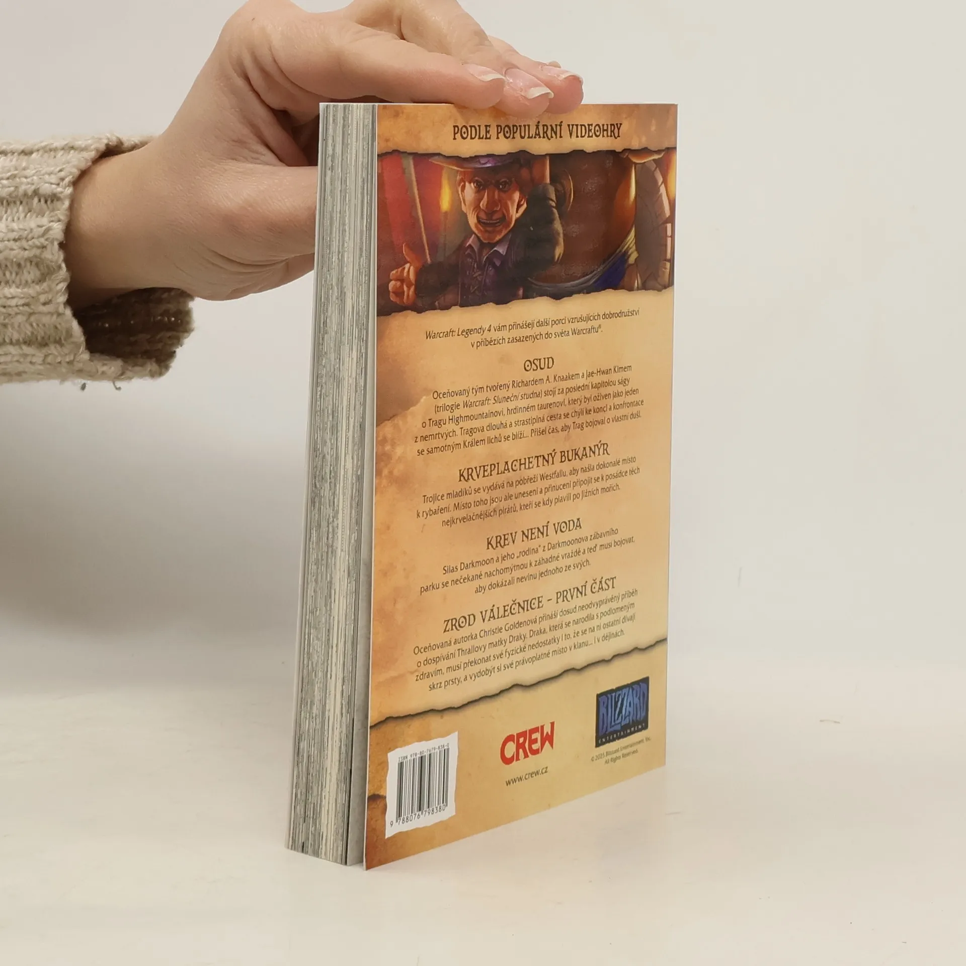 Warcraft: Legendy vám přinášejí další porci vzrušujících dobrodružství v tomto nejnovějším svazku příběhů zasazených do světa Warcraftu®. OSUD Oceňovaný tým tvořený Richardem Knaakem a Jae-Hwan Kimem (trilogie Warcraft: Sluneční studna) vám přináší poslední kapitolu ságy o Tragu Highmountainovi, hrdinném taurenovi, který byl oživen jako jeden z nemrtvých. Tragova dlouhá a strastiplná cesta se chýlí ke konci a konfrontace se samotným Králem lichů se blíží… Přišel čas, aby Trag bojoval o vlastní duši. KRVEPLACHETNÝ BUKANÝR Trojice mladíků se vydává na pobřeží Westfallu, aby našli dokonalé místo k rybaření. Místo toho jsou ale uneseni a přinuceni připojit se k posádce těch nejkrvelačnějších pirátů, kteří se kdy plavili po Jižních mořích. KREV NENÍ VODA Silas Darkmoon a jeho rodina z Darkmoonova zábavního parku se nečekaně nachomýtnou k záhadné vraždě a teď musí bojovat, aby dokázali nevinu jednoho ze svých. ZROD VÁLEČNICE – PRVNÍ ČÁST Oceňovaná autorka Christie Goldenová přináší dosud neodvyprávěný příběh o dospívání Thrallovy matky Draky. Draka, která se narodila s podlomeným zdravím, musí překonat své fyzické nedostatky i to, že se na ni ostatní dívají skrz prsty, a vydobýt si své právoplatné místo v klanu… i v dějinách.