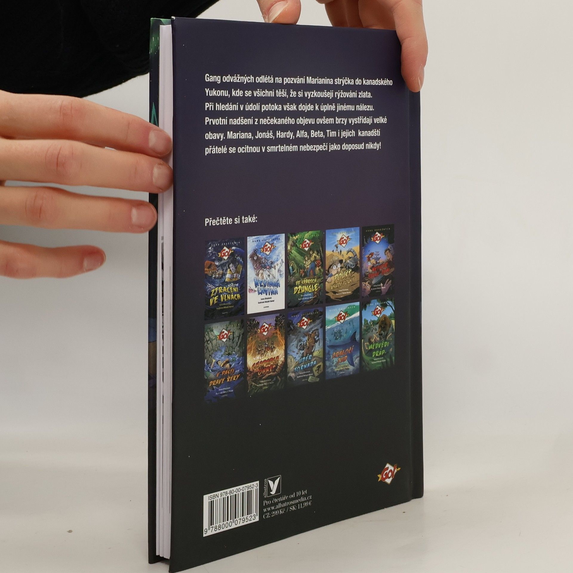 Akční dobrodružství s příchutí pravěku. Jedenáctá kniha ze série GO! Gang odvážných odlétá na pozvání Marianina strýčka do kanadského Yukonu, kde se všichni těší, že si vyzkoušejí rýžování zlata. Při hledání vhodného místa v údolí potoka však dojde k úplně jinému nálezu. V rozmrzajícím permafrostu parta objeví něco naprosto nečekaného. Prvotní nadšení ovšem brzy vystřídají velké obavy. Mariana, Jonáš, Hardy, Alfa, Beta, Tim i jejich kanadští přátelé se ocitnou v smrtelném nebezpečí jako doposud nikdy!