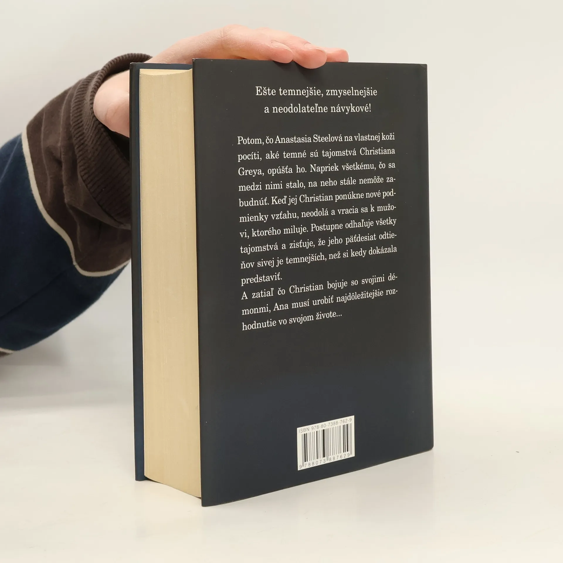 Druhý diel erotického románu o temných túžbach v každom z nás… Potom čo Anastasia Steeleová na vlastnej koži pocíti, ako temné sú tajomstvá Christiana Greye, opúšťa ho. Napriek tomu, čo sa medzi nimi stalo, na neho stále nemôže zabudnúť. Keď jej teda Christian predloží novú zmluvu, nemôže odolať a vracia sa k mužovi, ktorého miluje. Postupne odhaľuje všetky tajomstvá a zisťuje, že jeho päťdesiat odtieňov je oveľa temnejších, ako si mohla predstaviť. A zatiaľ čo Christian bojuje so svojimi démonmi, Ana musí učiniť najdôležitejšie rozhodnutie vo svojom živote...