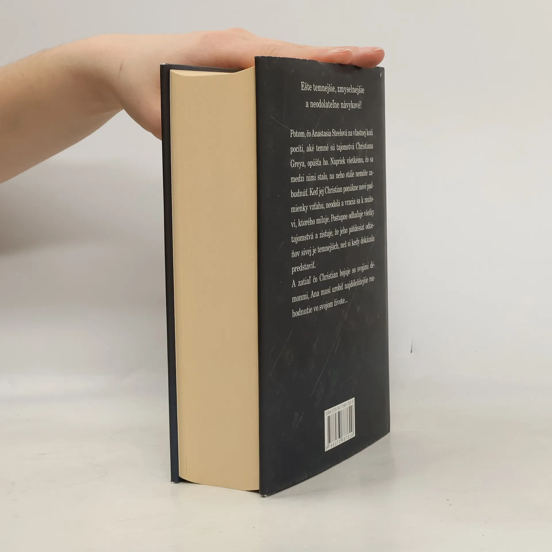 Druhý diel erotického románu o temných túžbach v každom z nás… Potom čo Anastasia Steeleová na vlastnej koži pocíti, ako temné sú tajomstvá Christiana Greye, opúšťa ho. Napriek tomu, čo sa medzi nimi stalo, na neho stále nemôže zabudnúť. Keď jej teda Christian predloží novú zmluvu, nemôže odolať a vracia sa k mužovi, ktorého miluje. Postupne odhaľuje všetky tajomstvá a zisťuje, že jeho päťdesiat odtieňov je oveľa temnejších, ako si mohla predstaviť. A zatiaľ čo Christian bojuje so svojimi démonmi, Ana musí učiniť najdôležitejšie rozhodnutie vo svojom živote...