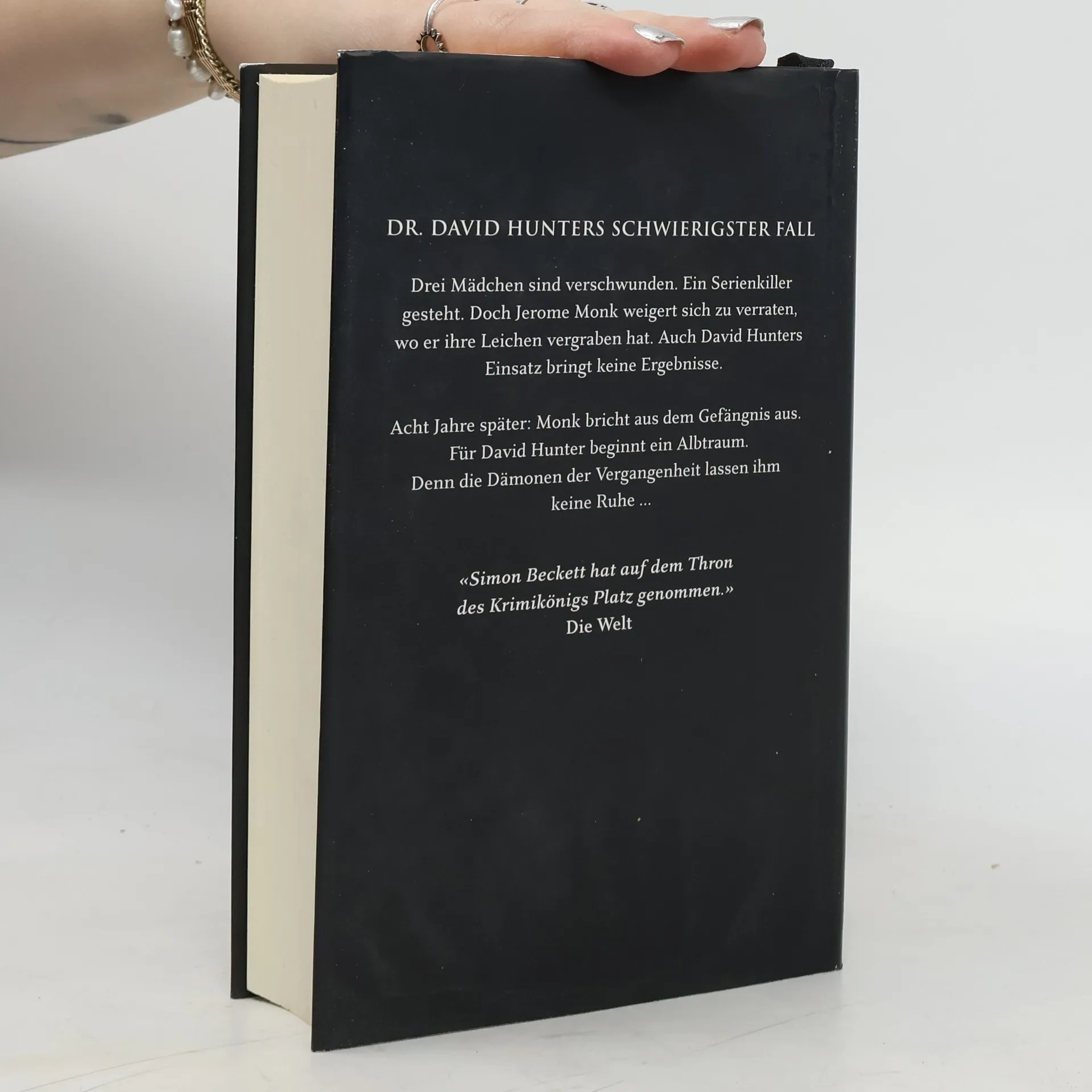 DR. DAVID HUNTERS SCHWIERIGSTER FALLDrei Mädchen sind verschwunden. Ein Serienkiller gesteht. Doch Jerome Monk weigert sich zu verraten, wo er ihre Leichen vergraben hat. Auch David Hunters Einsatz bringt keine Ergebnisse.Acht Jahre später: Monk bricht aus dem Gefängnis aus. Für David Hunter beginnt ein Albtraum. Denn die Dämonen der Vergangenheit lassen ihm keine Ruhe ...«Simon Beckett hat auf dem Thron des Krimikönigs Platz genommen.» Die Welt