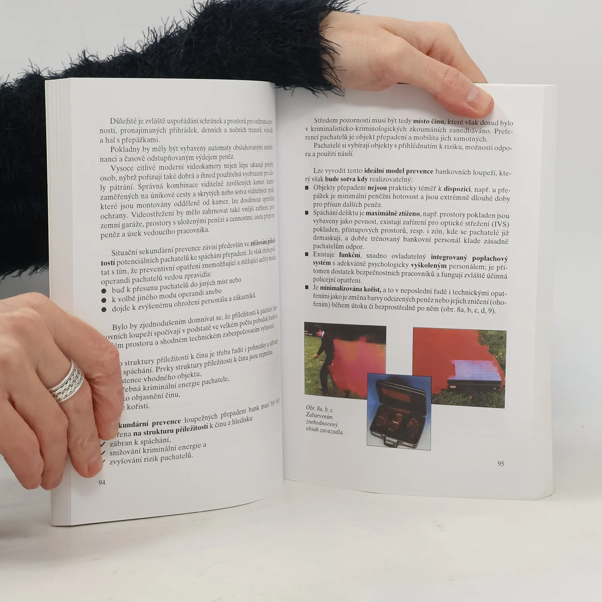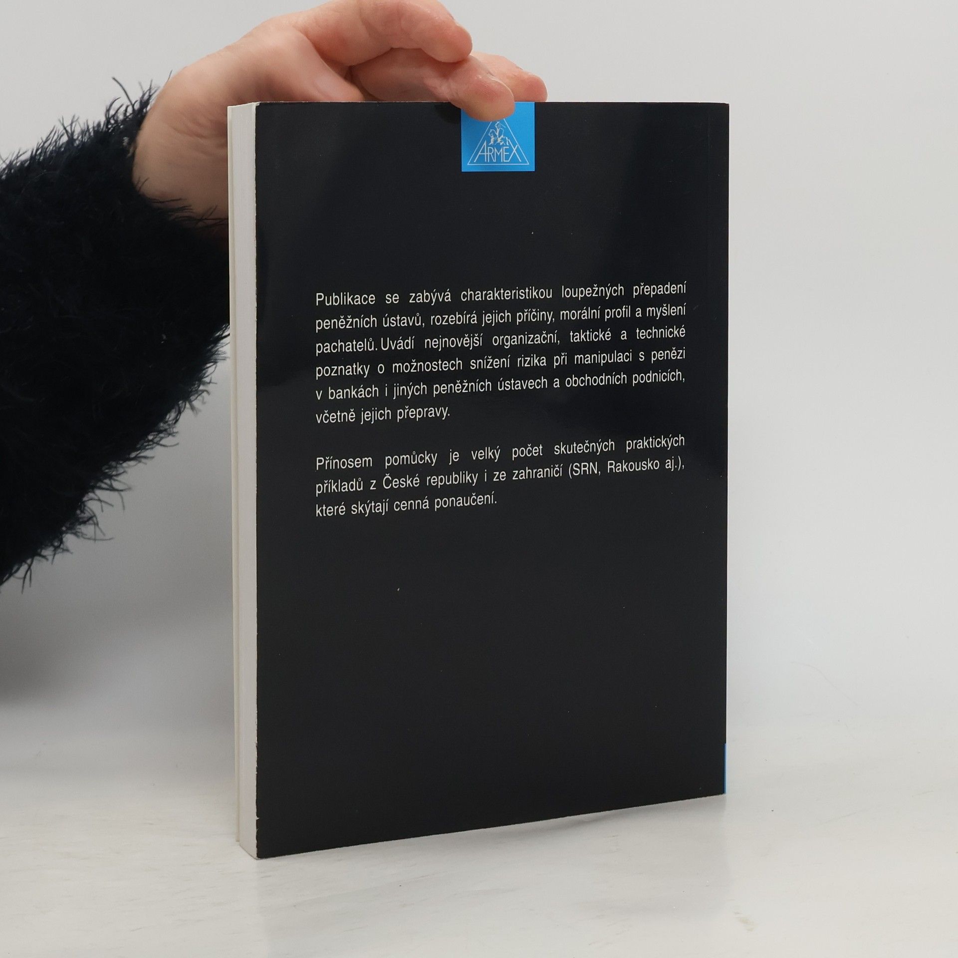 Publikace se zabývá charakteristikou loupežných přepadení peněžních ústavů, rozebírá jejich příčiny, morální profil a myšlení pachatelů. Uvádí nejnovější organizační, taktické a technické poznatky o možnostech snížení rizika při manipulaci s penězi v bankách i jiných peněžních ústavech a obchodních podnicích, včetně jejich přepravy. Přínosem pomůcky je velký počet skutečných praktických příkladů z České republiky i ze zahraničí (SRN, Rakousko aj.), které skýtají cenná poučení. Otázkami souvisejícími s transporty peněz a cenností, které bývají často terčem loupežných přepadení, se zabývá odborná publikace Organizace a taktika přepravy peněz a cenností. O zabezpečování objektů všech typů je komplexně pojednáno v knize Zabezpečovací systémy. Situační prevence kriminality. O tom, jak se má v těchto krizových situacích chovat příslušník Policie ČR, pojednává Taktika policejní akce. Zkušenosti amerických policistů poutavě popisuje kniha Jak přežít v betonové džungli. Závažnými zločiny bez použití násilí se zabývá kniha Podvody, zpronevěry, machinace.