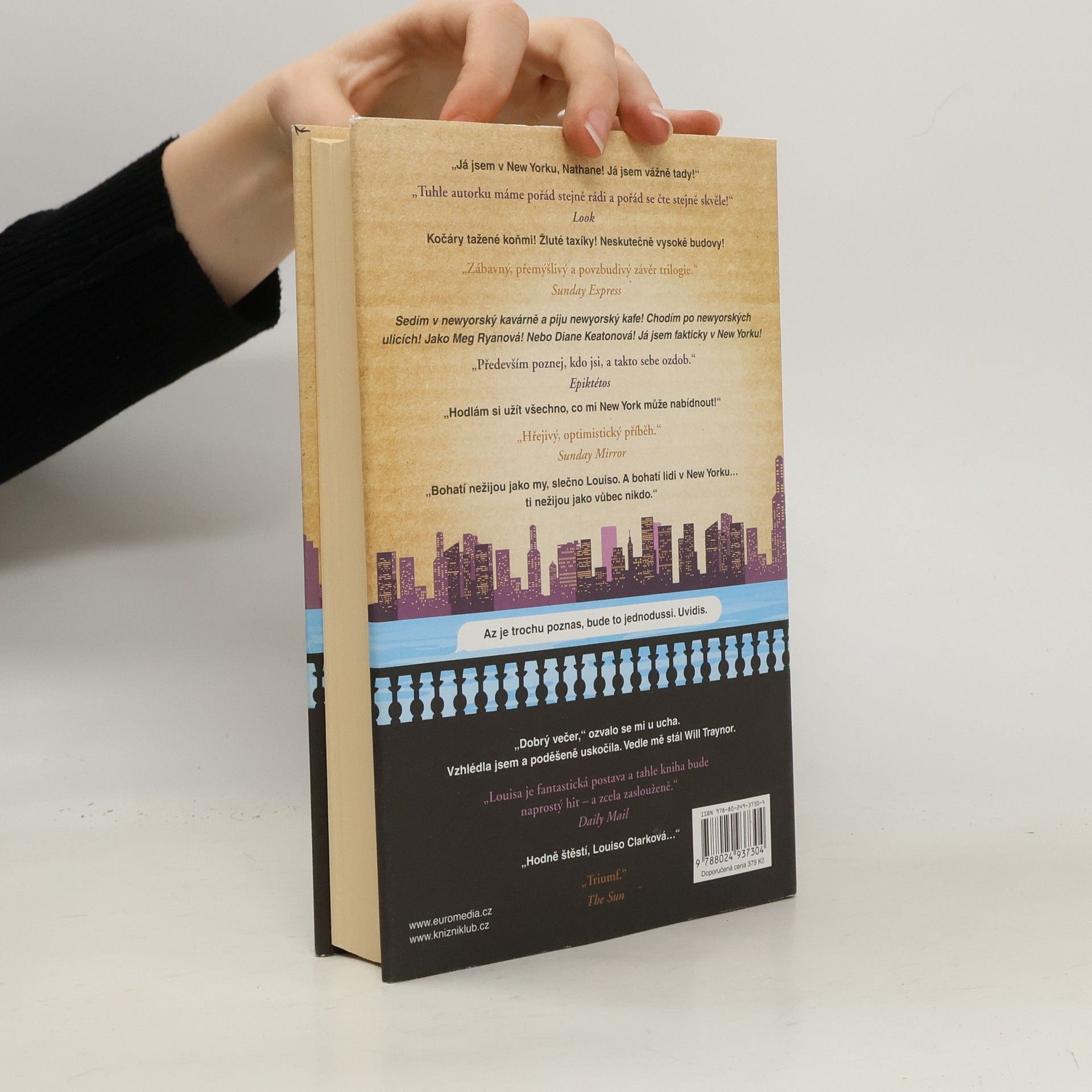 Louisa Clarková z bestellerů Než jsem tě poznala a Život po tobě se vrací v novém románu Jojo Moyesové! A hodně toho ví… Tak například ví, jak daleko je z jejího nového domova v New Yorku do Londýna, kde žije její přítel Sam. Ví také, že její nový zaměstnavatel je dobrý člověk a že před ním jeho manželka skrývá tajemství. Co ovšem Louisa ještě netuší, je to, že nová práce v novém městě jí rozhodně nezaručí idylický život, ve který tolik doufala, a že bude její vztah se Samem z obou stran podroben zkoušce ohněm. A neví také, že lidé, s nimiž se ve své nové životní etapě setká, ji možná postrčí dost nečekaným směrem…