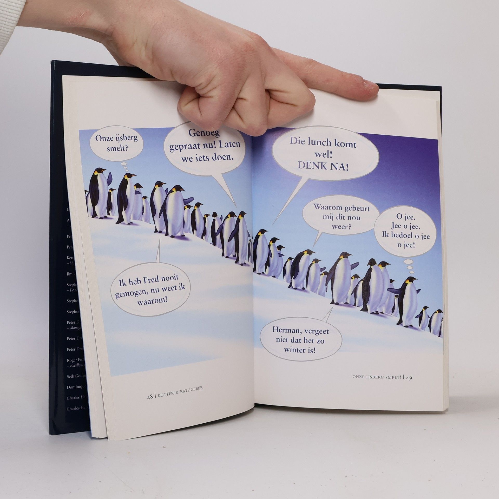 Beschouwing over organisatieverandering in de vorm van een fabel over pinguïns die een oplossing moeten bedenken als hun ijsberg smelt.