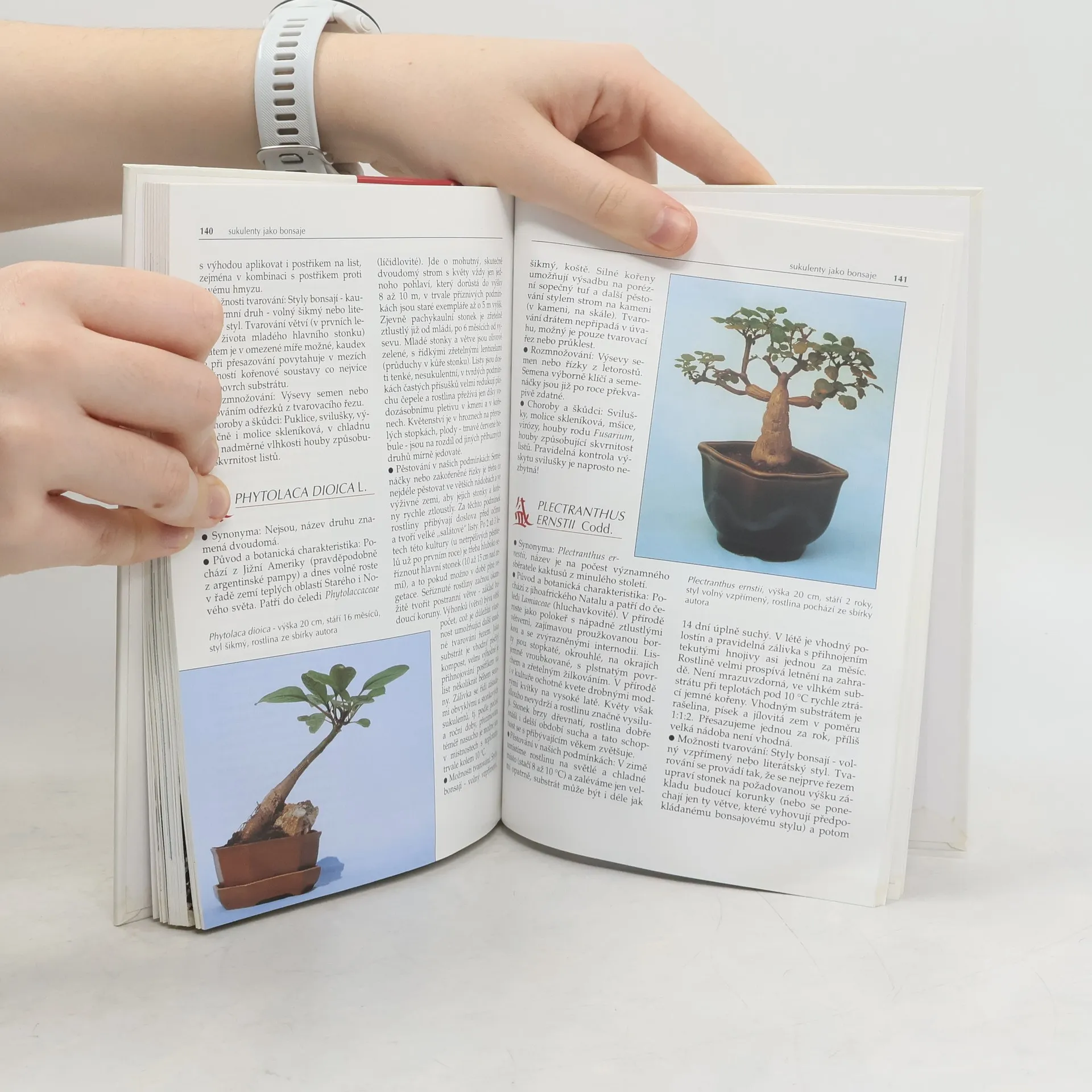Způsoby pěstování vybraných druhů sukulentních rostlin, které jsou vhodné do suchých bytů a je možné je tvarovat jako bonsaje. Kromě podrobného popisu 120 nekaktusových sukulentů, osvědčených pěstitelských postupů, námětů a ukázek tvarování kniha přináší i fotografie druhů ve volné přírodě v Africe a Mexiku.