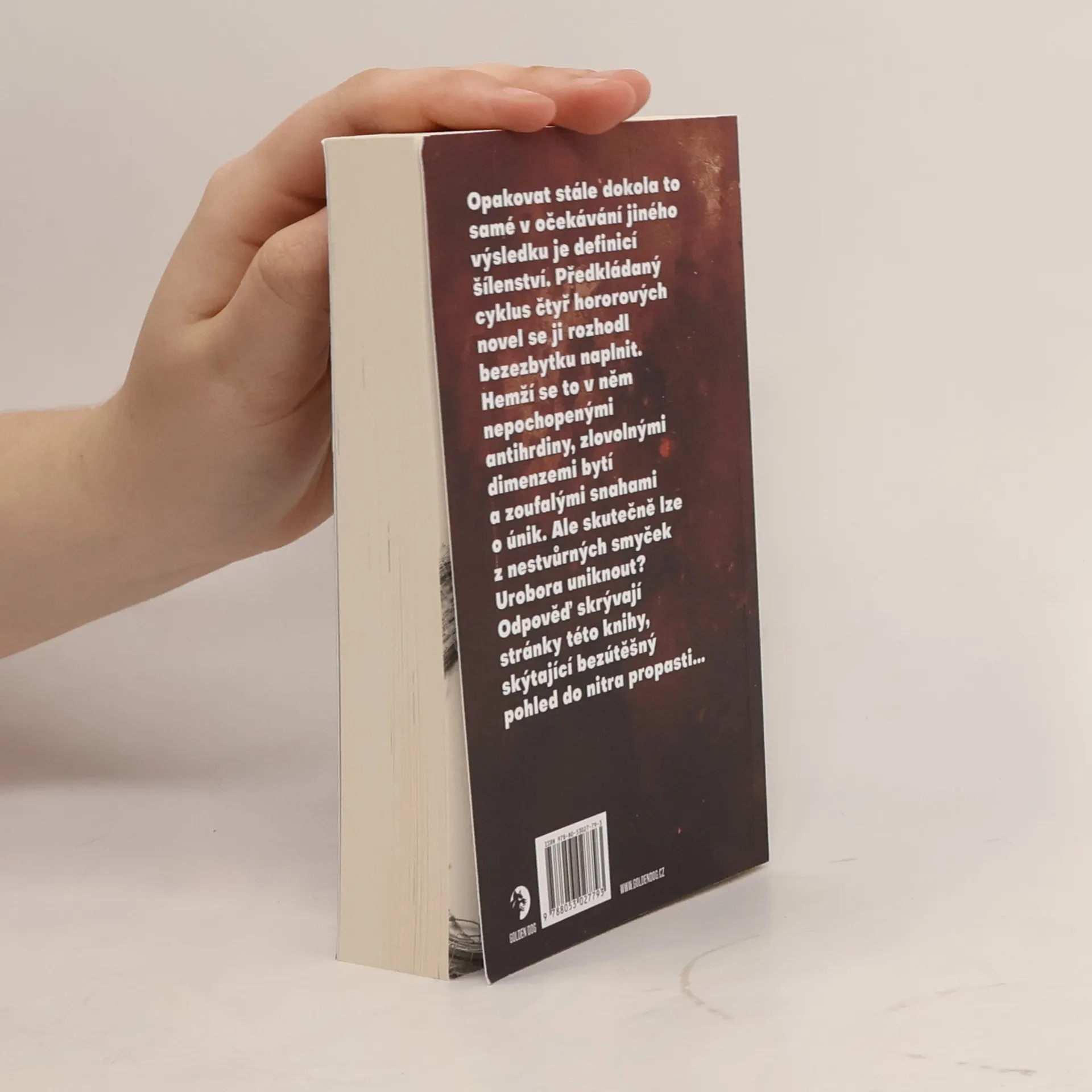 Opakovat stále dokola to samé v očekávání jiného výsledku je definicí šílenství. Předkládaný cyklus čtyř hororových novel se ji rozhodl bezezbytku naplnit. Hemží se to v něm nepochopenými antihrdiny, zlovolnými dimenzemi bytí a zoufalými snahami o únik. Ale skutečně lze z nestvůrných smyček Urobora uniknout? Odpověď skrývají stránky této knihy, skýtající bezútěšný pohled do nitra propasti…