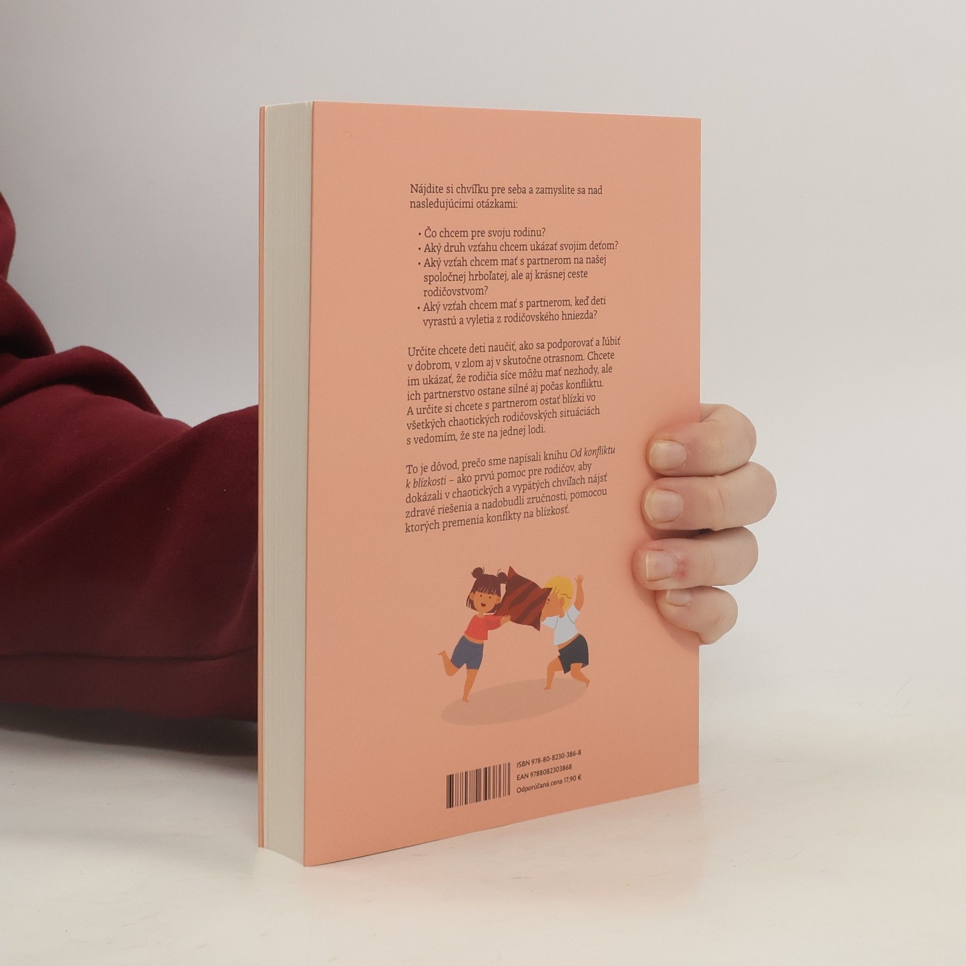 Prosím vás, aby ste sa zamysleli nad slovami hádka a konflikt. Čo pre vás hádka znamená? Čo vám napadne ako prvé? Aká je vaša reakcia, keď musíte čeliť hádke? Rodičovstvo zásadným spôsobom zmení partnerský vzťah, no väčšina rodičov je príliš vyčerpaná z každodennej rutiny, aby sa zaoberali tým, ako ich vzťah vyzerá. To vedie k opakovaným hádkam, konfliktom a k prehlbujúcemu sa pocitu úzkosti, hnevu, zranenia či osamelosti – práve vtedy, keď človek potrebuje partnerovu podporu azda najviac. Dobrá správa je, že konflikty sú v skutočnosti znakom toho, že sa snažíme priblížiť tomu druhému, len sme uviazli v nepríjemnom komunikačnom vzorci. Poradenskí psychológovia Erin a Stephen Mitchellovci vás v knihe Od konfliktu k blízkosti prevedú trinástimi partnerskými konfliktmi, ktoré sú nielen bežné, ale dokonca nevyhnutné na to, aby ste si udržali pevný vzťah. V každej situácii ukazujú, ako konflikt vyzerá v praxi, a ponúkajú scenáre a otázky na zamyslenie, ktoré môžu partneri využiť v reálnom čase, aby posilnili vzájomnú blízkosť a porozumenie. Cieľom je vyjadriť svoje pocity a aktívne počúvať toho druhého, aby spoločne zvládli krásnu, ale aj náročnú cestu rodičovstvom. Výsledkom je šťastnejší a zdravší vzťah.