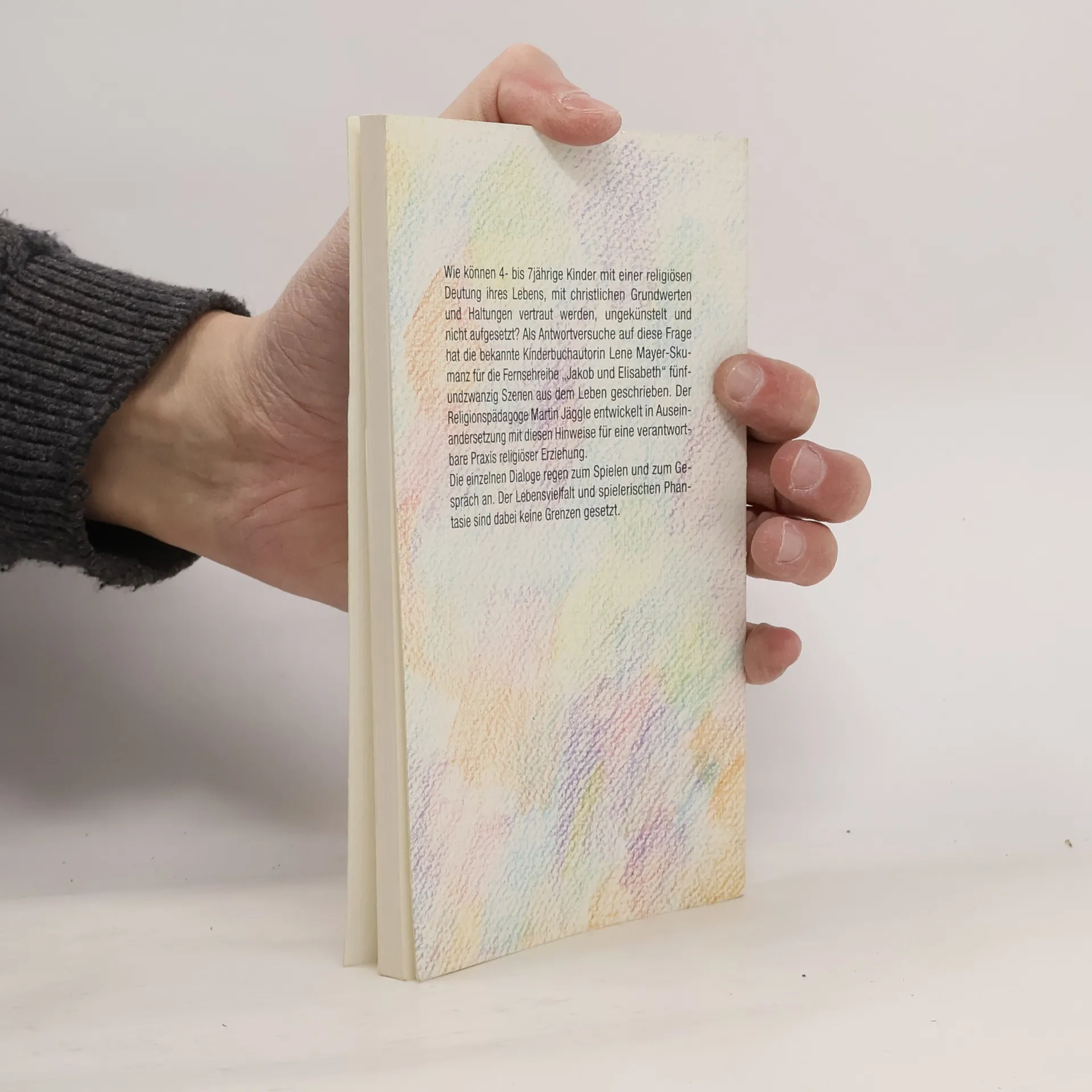 Wie können 4- bis 7jährige Kinder mit einer religiösen Deutung ihres Lebens, mit christlichen Grundwerten und Haltungen vertraut werden, ungekünstelt und nicht aufgesetzt? Als Antwortversuche auf diese Frage hat die Kinderbuchautorin Lene Mayer-Skumanz für die Fernsehreihe "Jakob und Elisabeth" fünfundzwanzig Szenen aus dem Leben geschrieben. Der Religionspädagoge Martin Jäggle entwickelt in Auseinandersetzung mit diesen Hinweise für eine verantwortbare Praxis religiöser Erziehung.Die einzelnen Dialoge regen zum Spielen und zum Gespräch an. Der Lebensvielfalt und spielerischen Phantasie sind dabei keine Grenzen gesetzt.