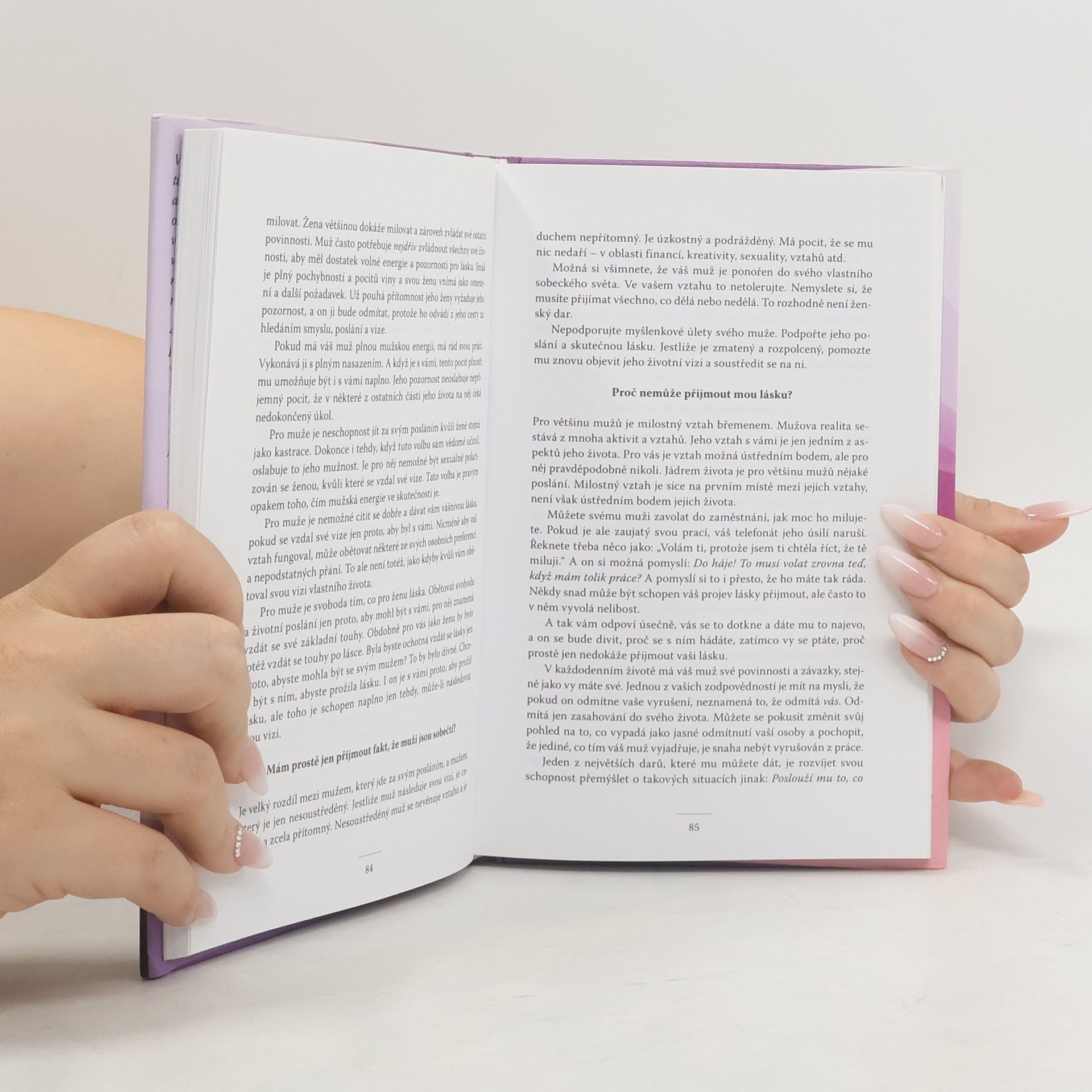 Hledáte spřízněnou duši nebo se snažíte přimět manžela, aby vynášel odpadky? Narazili jste na chování mužů, kterému nerozumíte, a ptáte se: „Proč to dělají?“ Tato kniha přináší netradiční odpovědi na otázky žen o mužích, což zajisté zaujme i muže. Nabízí naději těm, kteří chtěli vzdát touhu po lásce a porozumění. Obsahuje užitečnou příručku, která odpovídá na časté otázky, jako například: Proč se muži otáčejí za pohlednými ženami? Proč se raději věnují práci než vztahům? Proč se vyhýbají agresivním ženám? Autor David Deida zkoumá mužské vlastnosti, vysvětluje rozdíly mezi pohlavími a odhaluje důvody mužského chování. Jako uznávaný specialista na vztahy vychází ze zkušeností žen po celém světě a ukazuje, jak mohou ženy využít své schopnosti k překonání pastí ve vztazích. Formou otázek a odpovědí autor pomáhá ženám budovat důvěrné vztahy, rozdmýchat vášeň a zlepšit komunikaci s partnery. Kniha také učí, jak se vyrovnat s odlišnostmi mužů a posiluje schopnost zlepšit vztahy se všemi muži v životě, včetně přátel a nadřízených. Vede čtenáře do světa porozumění, respektu a lásky, a obnovuje toleranci ve vztazích mezi muži a ženami.