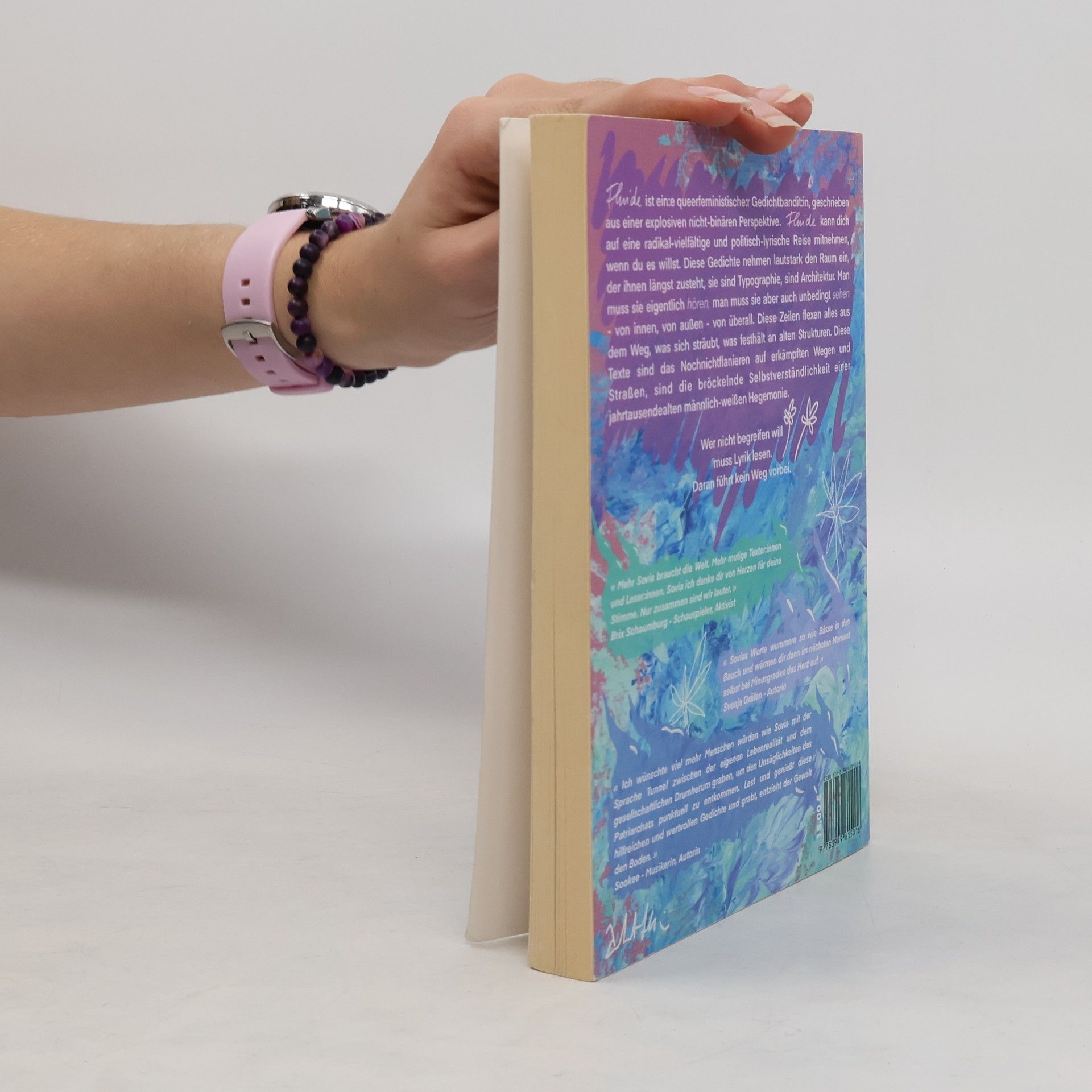 Fluide ist ein:e queerfeministische:r Gedichtbandit:in, geschrieben aus einer explosiven nicht-binären Perspektive. Fluide kann dich auf eine radikal-vielfältige und politisch-lyrische Reise mitnehmen, wenn du es willst. Diese Gedichte nehmen lautstark den Raum ein, der ihnen längst zusteht, sie sind Typographie, sind Architektur. Man muss sie eigentlich hören, man muss sie aber auch unbedingt sehen - von innen, von außen - von überall. Diese Zeilen flexen alles aus dem Weg, was sich sträubt, was festhält an alten Strukturen. Diese Texte sind das Nochnichtflanieren auf erkämpften Wegen und Straßen, sind die bröckelnde Selbstverständlichkeit einer jahrtausendealten männlich-weißen Hegemonie.Wer nicht begreifen willmuss Lyrik lesen.Daran führt kein Weg vorbei.
