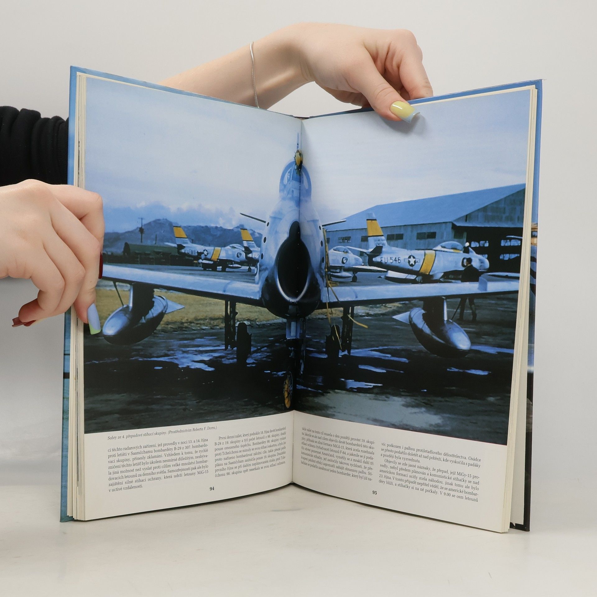Výpravná publikace o letadlech, pilotech a vzdušných bitvách korejské války. Kniha je podrobným rozborem letecké části války v Korei. Popisuje vývoj vzdušného konfliktu po jednotlivých časových etapách, podrobně se zabývá strategickými tahy obou válečných stran, přibližuje nasazení a úspěšnost různých typů letadel a v neposlední řadě mapuje osudy samotných letců. Publikace je vybavena bohatým fotografickým materiálem včetně kvalitních barevných snímků. V dodatkové části jsou přehledné tabulky, statistiky, poznámky a rejstříky.