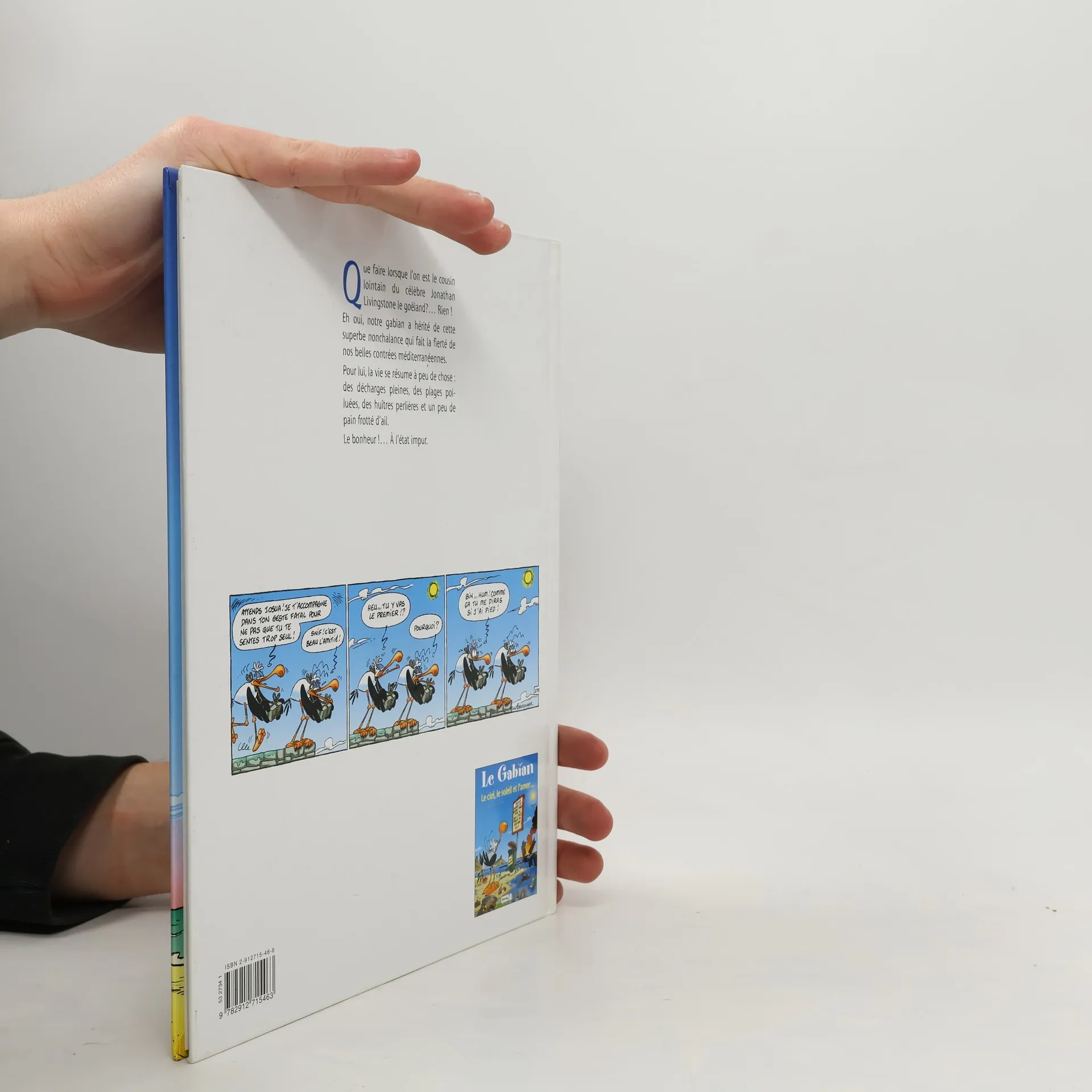Que faire lorsque l'on est le cousin lointain du célèbre Jonathan Livingstone le goëland ?... Rien ! Eh oui, notre gabian a hérité de cette superbe nonchalance qui fait la fierté de nos belles contrées méditerranéennes. Pour lui, la vie se résume à peu de chose des décharges pleines, des plages polluées, des huîtres perlières et un peu de pain frotté d'ail. Le bonheur !... A l'état impur.