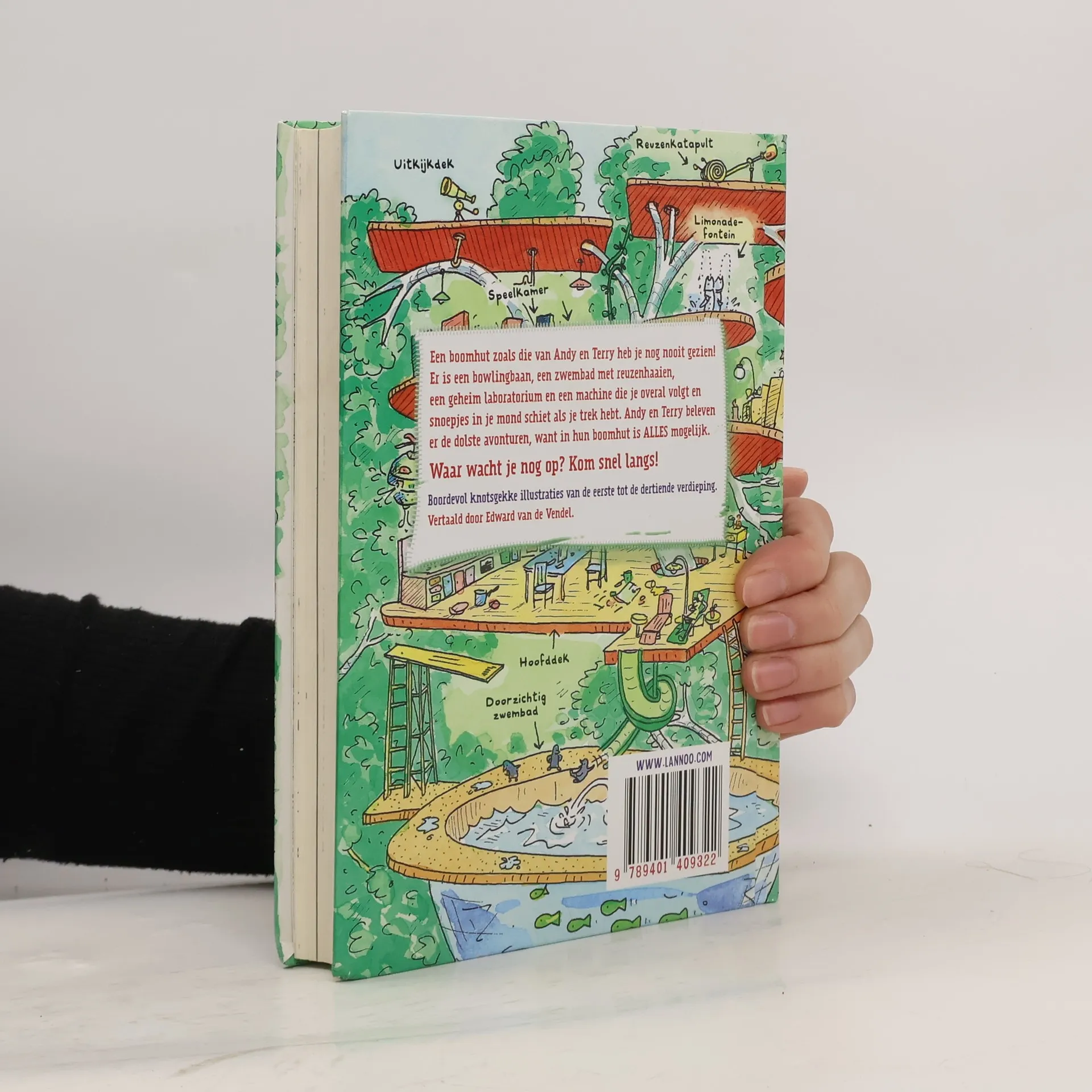 Het perfecte boek voor jonge lezers: humor en veel tekeningen! Een boomhut zoals die van Andy en Terry heb je nog nooit gezien! Er is een bowlingbaan, een zwembad met reuzenhaaien, een geheim laboratorium en een snoepjesmachine die je overal volgt en snoepjes in je mond schiet als je trek hebt. Andy en Terry beleven er de dolste avonturen, want in hun boomhut is ALLES mogelijk! Waar wacht je nog op? Kom snel langs!