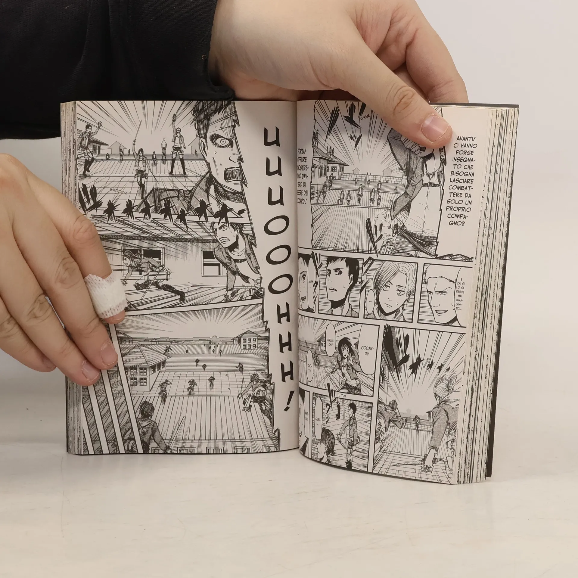 Il secondo volume del manga di culto di Hajime Isayama continua con una serie di colpi di scena che terranno col fiato sospeso anche i lettori più smaliziati. I Giganti hanno invaso la città e una battaglia impossibile viene combattuta strada per strada con tutti i mezzi. La ferocia e la potenza di questi esseri di cui nessuno sa niente rendono i Giganti inarrestabili, ma quando tutto sembra perduto…