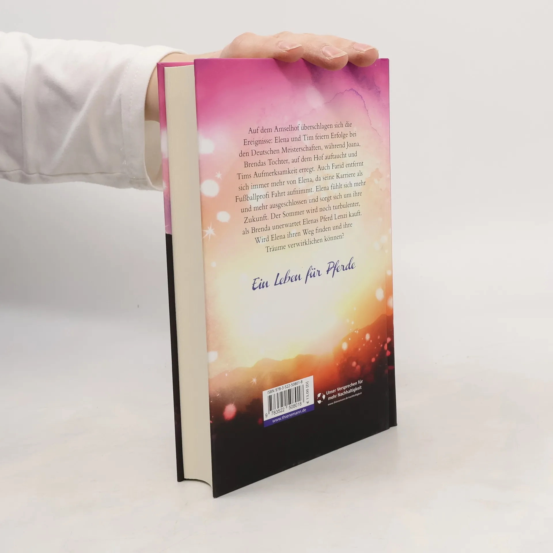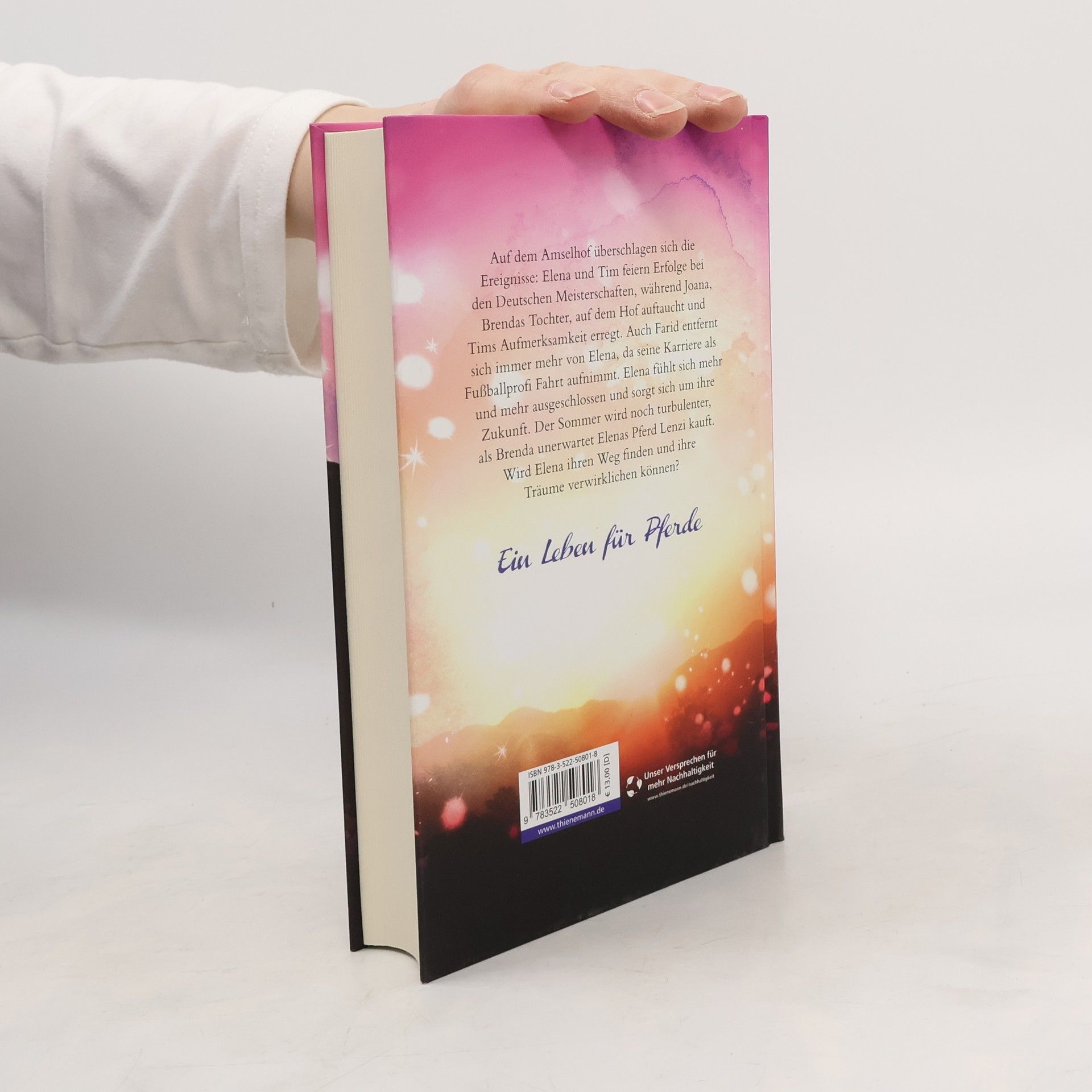 Auf dem Amselhof überschlagen sich die Ereignisse: Elena und Tim feiern Erfolge bei den Deutschen Meisterschaften, während Joana, Brendas Tochter, auf dem Hof auftaucht und Tims Aufmerksamkeit erregt. Auch Farid entfernt sich immer mehr von Elena, da seine Karriere als Fußball-Profi Fahrt aufnimmt. Elena fühlt sich mehr und mehr ausgeschlossen und sorgt sich um ihre Zukunft. Der Sommer wird noch turbulenter , als Brenda unerwartet Elenas Pferd Lenzi kauft. Wird Elena ihren Weg finden und ihre Träume verwirklichen können? Von den Fans sehnsüchtig erwartet: der neue Band der Bestseller-Serie. In dieser Serie bereits erschienen: Elena – Gegen alle Hindernisse (1) Elena – Sommer der Entscheidung (2) Elena – Das Geheimnis der Oaktree-Farm (3) Elena – Schatten über dem Turnier (4) Elena – Ihr größter Sieg (5) Elena – Eine falsche Fährte (6) Elena – In letzter Sekunde (7)