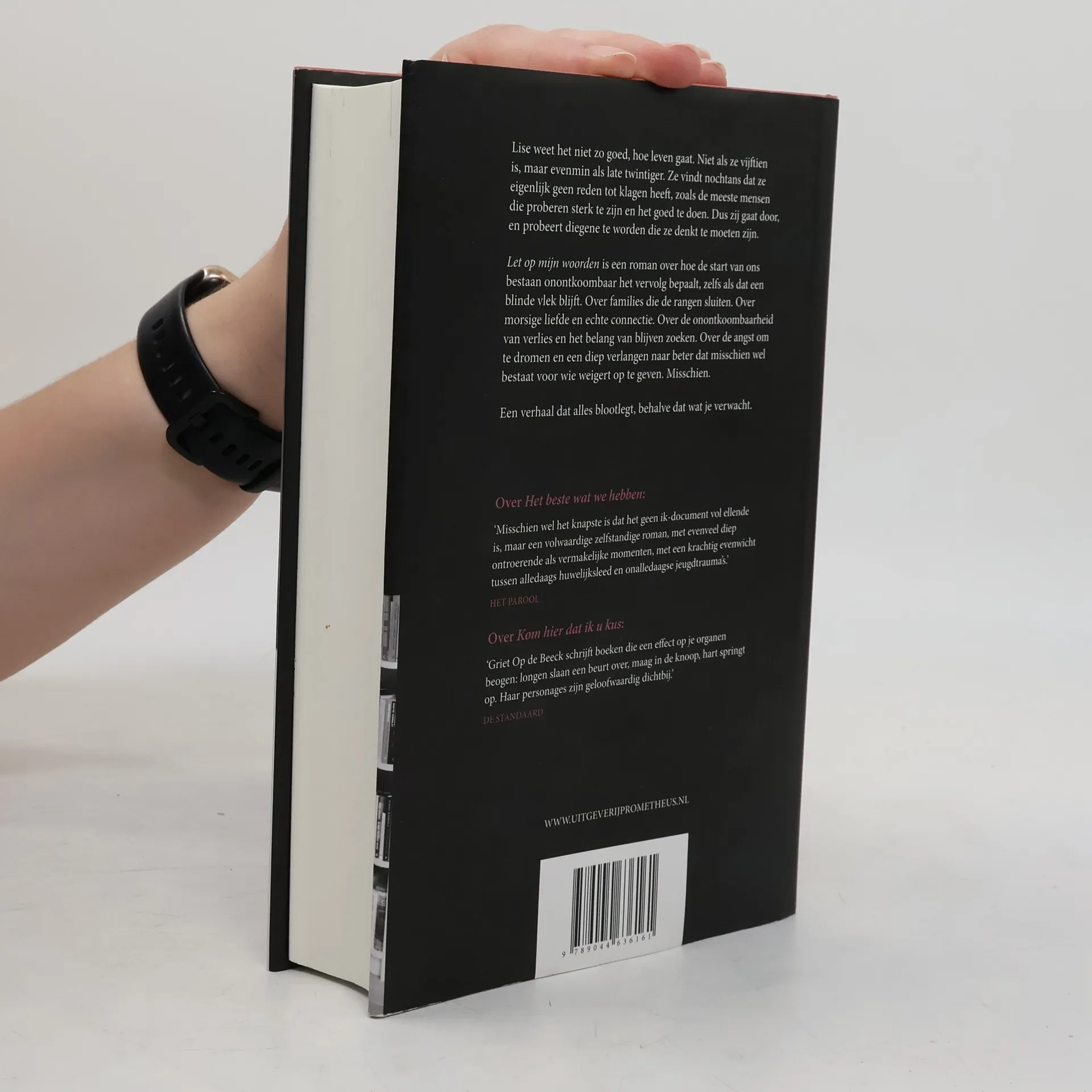 Lise weet het niet zo goed, hoe leven gaat. Niet als ze vijftien is, maar evenmin als late twintiger. Ze vindt nochtans dat ze eigenlijk geen reden tot klagen heeft, zoals de meeste mensen die proberen sterk te zijn en het goed te doen. Dus zij gaat door, en probeert diegene te worden die ze denkt te moeten zijn. Let op mijn woorden is een roman over hoe de start van ons bestaan onontkoombaar het vervolg bepaalt, zelfs als dat een blinde vlek blijft. Over families die de rangen sluiten. Over morsige liefde en echte connectie. Over de onontkoombaarheid van verlies en het belang van blijven zoeken. Over de angst om te dromen en een diep verlangen naar beter dat misschien wel bestaat voor wie weigert op te geven. Misschien. Een verhaal dat alles blootlegt, behalve dat wat je verwacht.