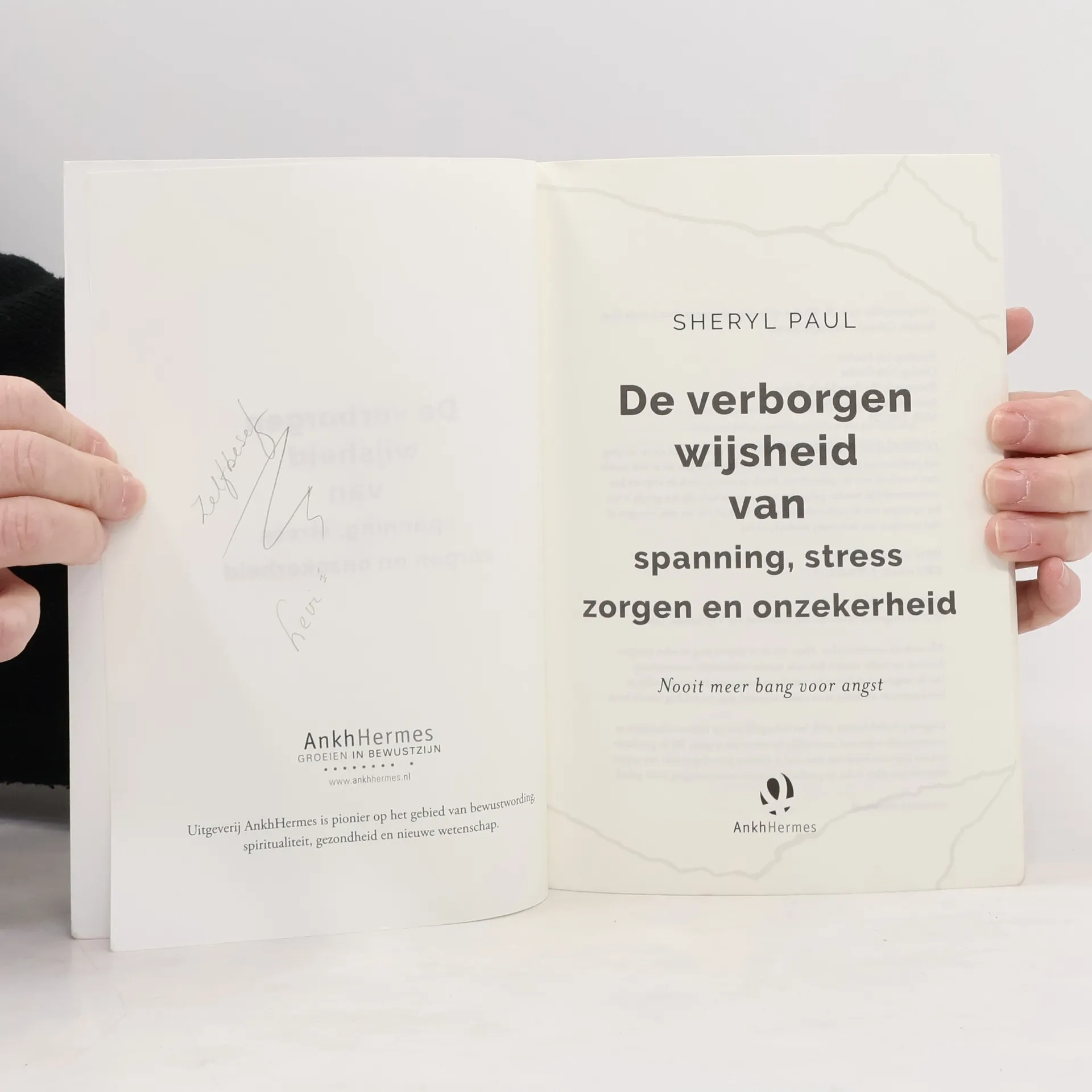De verborgen wijsheid van spanning, stress, zorgen en onzekerheid van Sheryl Paul neemt je mee naar de bron van je angsten en laat je compassie met jezelf voelen.In De verborgen wijsheid van spanning, stress, zorgen en onzekerheid. Nooit meer bang voor angst leert Sheryl Paul je om te gaan met angst. Je leert angst in te zetten om jezelf beter te leren kennen en te helen. Angst openbaart zich vaak als chronisch gepieker, paniekaanvallen, obsessies, dwangneurosen, in de vorm van slapeloosheid of lichamelijke klachten. Angst is op hol geslagen gevoeligheid. Sheryl Paul neemt je mee naar de bron van je angsten en laat je compassie met jezelf voelen. In dit diepgaande en tegelijkertijd praktische boek geeft ze oefeningen bij acute angst en oefeningen die je helpen diepere lagen van angst te ontcijferen en te helen. Alle inzichten om niet langer bang te zijn voor jouw angst.