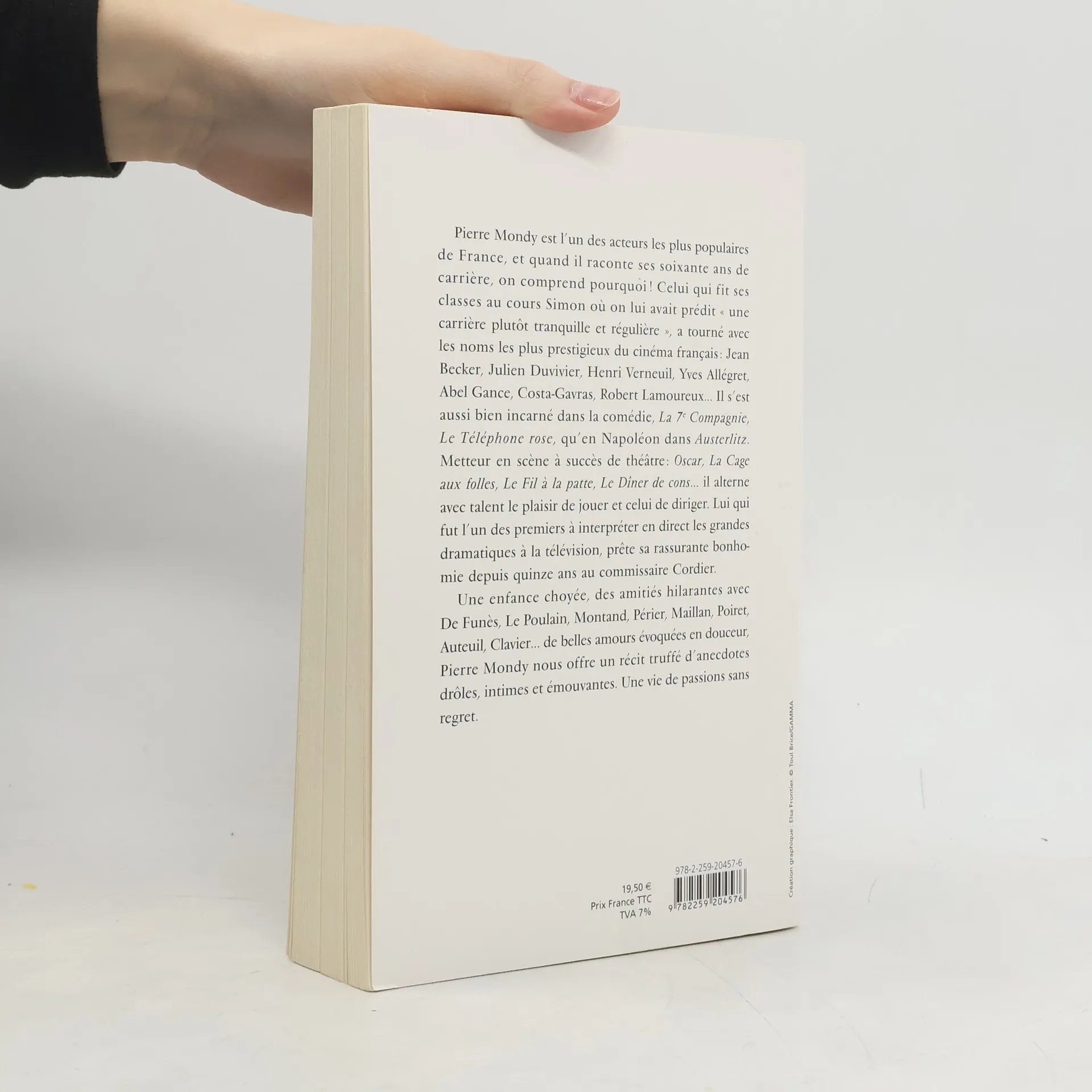 De Napoléon aux Cordier, juge et flic, de La cage aux folles à La 7ème compagnie , l'acteur le plus populaire de France raconte ses 60 ans de carrière, d'amitiés et d'amours tumultueuses. Pierre Mondy est l'un des acteurs les plus populaires de France, et quand il raconte ses soixante ans de carrière, on comprend pourquoi! Celui qui fit ses classes au cours Simon où on lui avait prédit "une carrière plutôt tranquille et régulière", a tourné avec les noms les plus prestigieux du cinéma franç Jean Becker, Julien Duvivier, Henri Verneuil, Yves Allégret, Abel Gance, Costa-Gavras, Robert Lamoureux... Il s'est aussi bien incarné dans la comédie, La 7e Compagnie, Le Téléphone rose , qu'en Napoléon dans Austerlitz . Metteur en scène à succès de théâ Oscar, La Cage aux folles, Le Fil à la patte, Le Dîner de cons... il alterne avec talent le plaisir de jouer et celui de diriger. Lui qui fut l'un des premiers à interpréter en direct les grandes dramatiques à la télévision, prête sa rassurante bonhomie depuis quinze ans au commissaire Cordier.Une enfance choyée, des amitiés hilarantes avec De Funès, Le Poulain, Montand, Périer, Maillan, Poiret, Auteuil, Clavier... de belles amours évoquées en douceur, Pierre Mondy nous offre un récit truffé d'anecdotes drôles, intimes et émouvantes. Une vie de passions sans regret.
