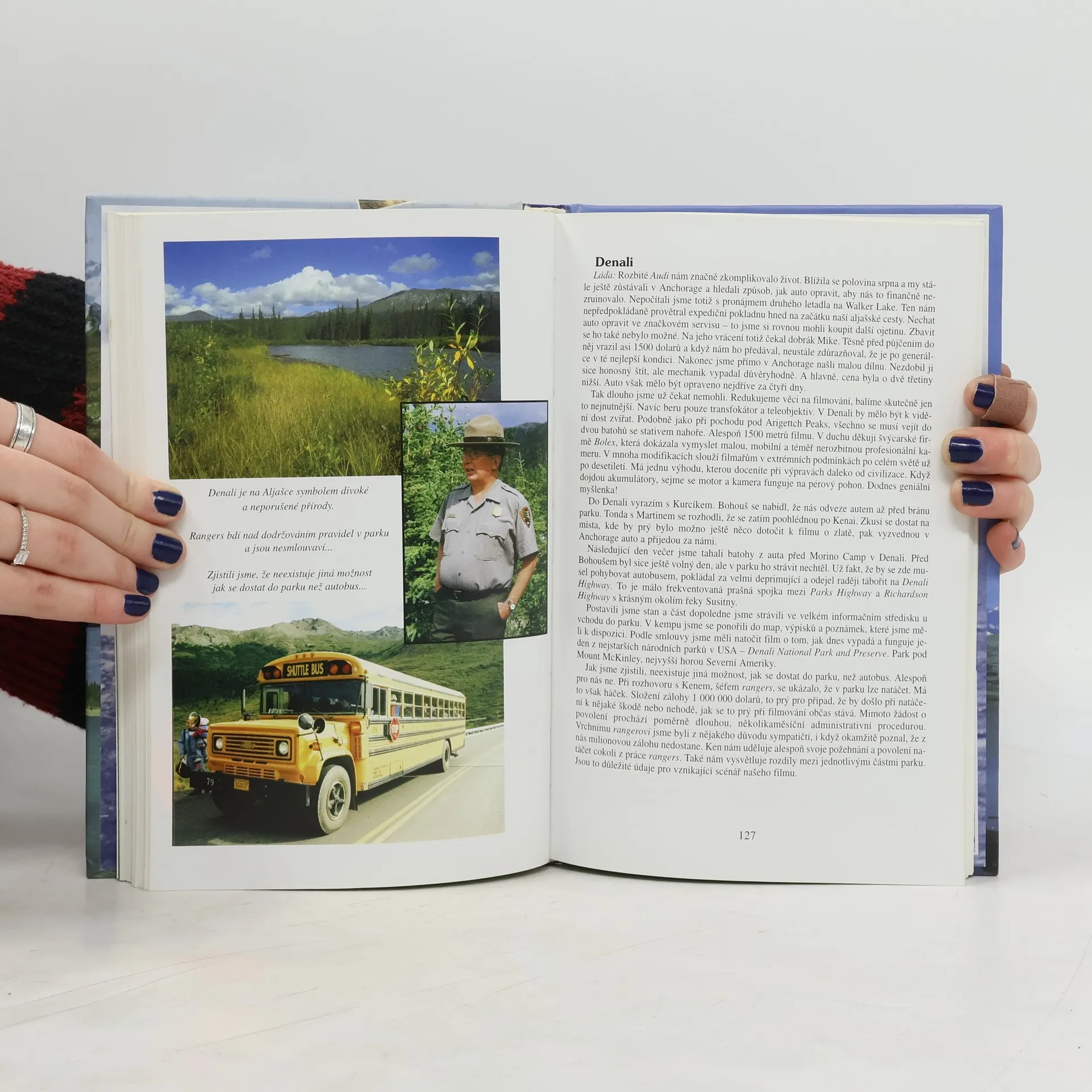 Kniha je členěna celkem do pěti uzavřených částí a každá z nich popisuje jinou oblast Aljašky. Počtete si o Brooks Range a povodí řeky Kobuk, zlatokopecké stezce ze Skagway do Dawson City a splutí Yukonu, národním parku Denali a obrovských medvědech z ostrova Kodiak. Přesto, že se jedná o knihu popisnou, z jejich stránek na vás dýchne romantika spojená se jmény jako Eskymo Welzl nebo Jack London. Do popisů vlastní cesty je zařazeno velké množství faktografických vložek, které popisují přírodu a historii a uvádí spoustu věcí do patřičných souvislostí. Rozhovory s různými lidmi (včetně našich krajanů žijících na Aljašce) vám také napomohou udělat si obrázek o jejich způsobu života. Kniha má pevnou vazbu je tištěna na křídovém papíře a obsahuje velké množství barevných i historických černobílých fotografií.