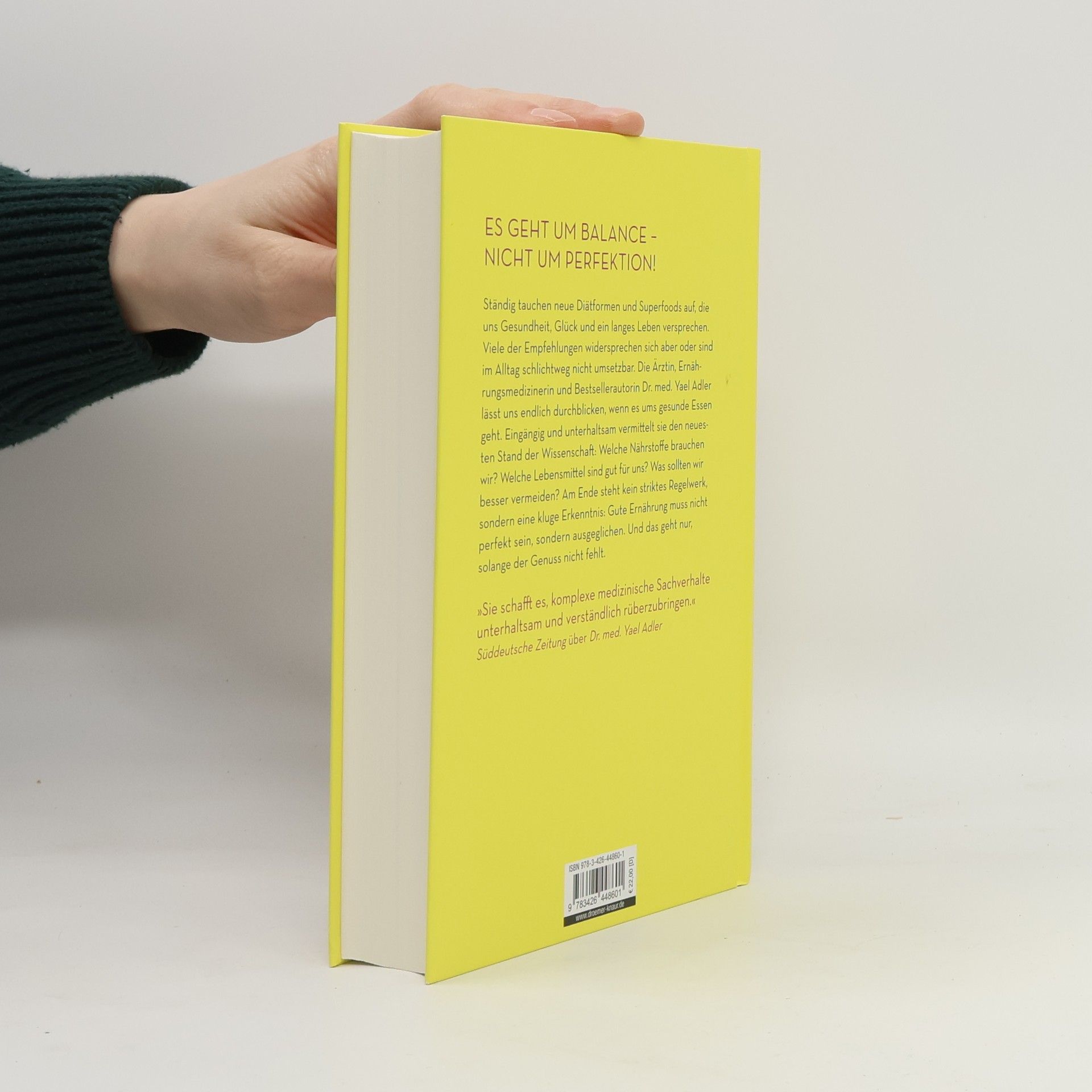 Erzählungen über Ernährung sind seit jeher ein fester Bestandteil des Buchmarkts. Die Ärztin Yael Adler hat ein informatives und ausgewogenes Sachbuch zu diesem Thema verfasst. Es geht um Balance, nicht um Perfektion! In ihrem neuen Werk beleuchtet die Bestsellerautorin die wichtigsten Bestandteile unserer Ernährung: Kohlenhydrate, Fette, Proteine, Vitamine und Ballaststoffe. Trotz der Vielzahl an Diätformen und Superfoods, die oft widersprüchliche Empfehlungen bieten, gibt es klare Antworten auf viele Fragen. Paleo, Low-Carb, Low-Fat oder vegan – was ist wirklich gesund? Sind zuckerfreie oder vegetarische Alternativen besser? Welche Nahrungsergänzungsmittel sind effektiv? Und wie viel Wasser sollten wir täglich trinken? Dr. med. Yael Adler bringt Licht ins Dunkel und erklärt verständlich, welche Nährstoffe und Ernährungsweisen tatsächlich vorteilhaft sind und was wir meiden sollten. Sie bietet praktische Tipps, die leicht in den Alltag integriert werden können. Dabei zeigt sie, dass gesunde Ernährung Spaß machen kann und Genuss nicht ausgeschlossen ist. „Gesunde Ernährung beginnt mit kleinen, klugen Entscheidungen.“