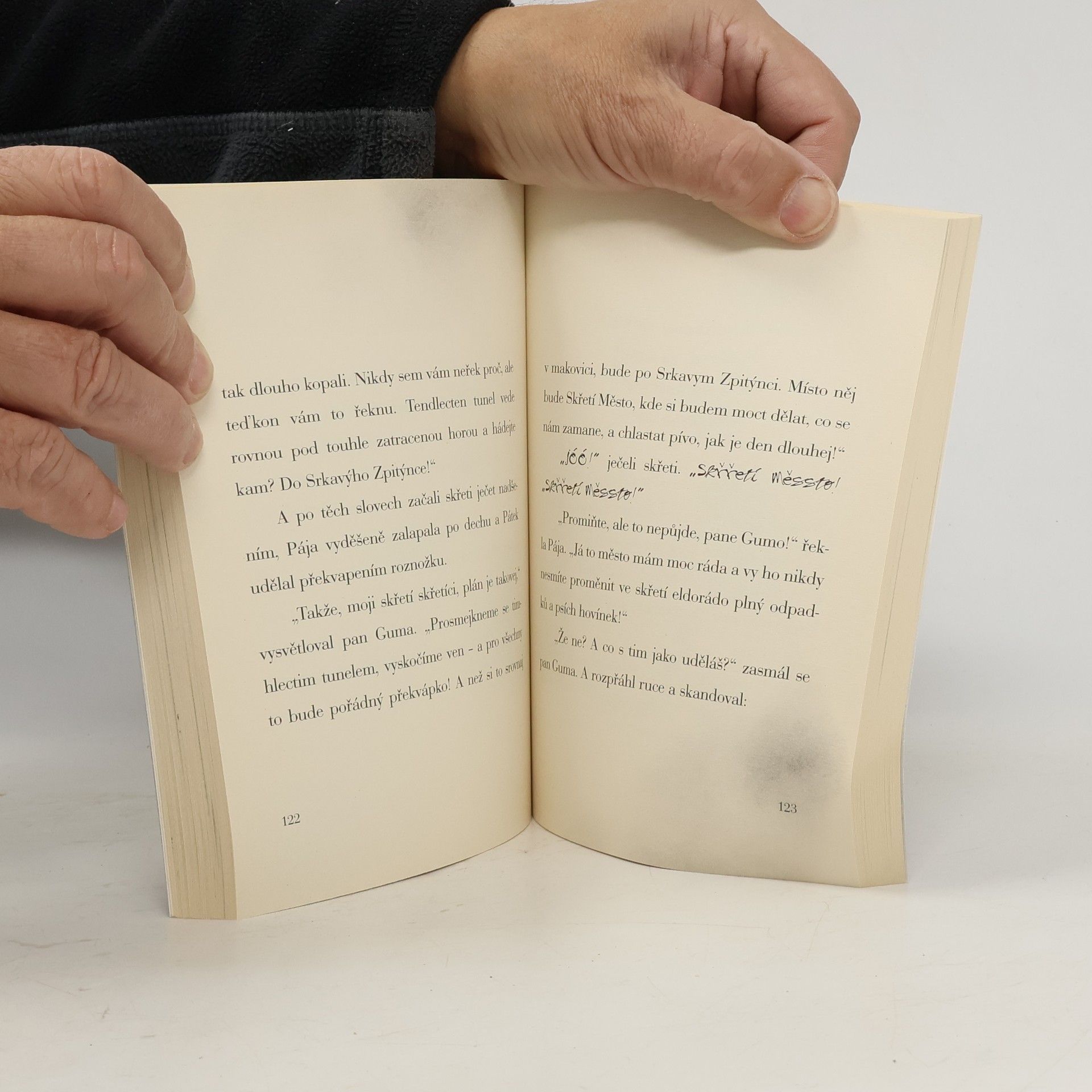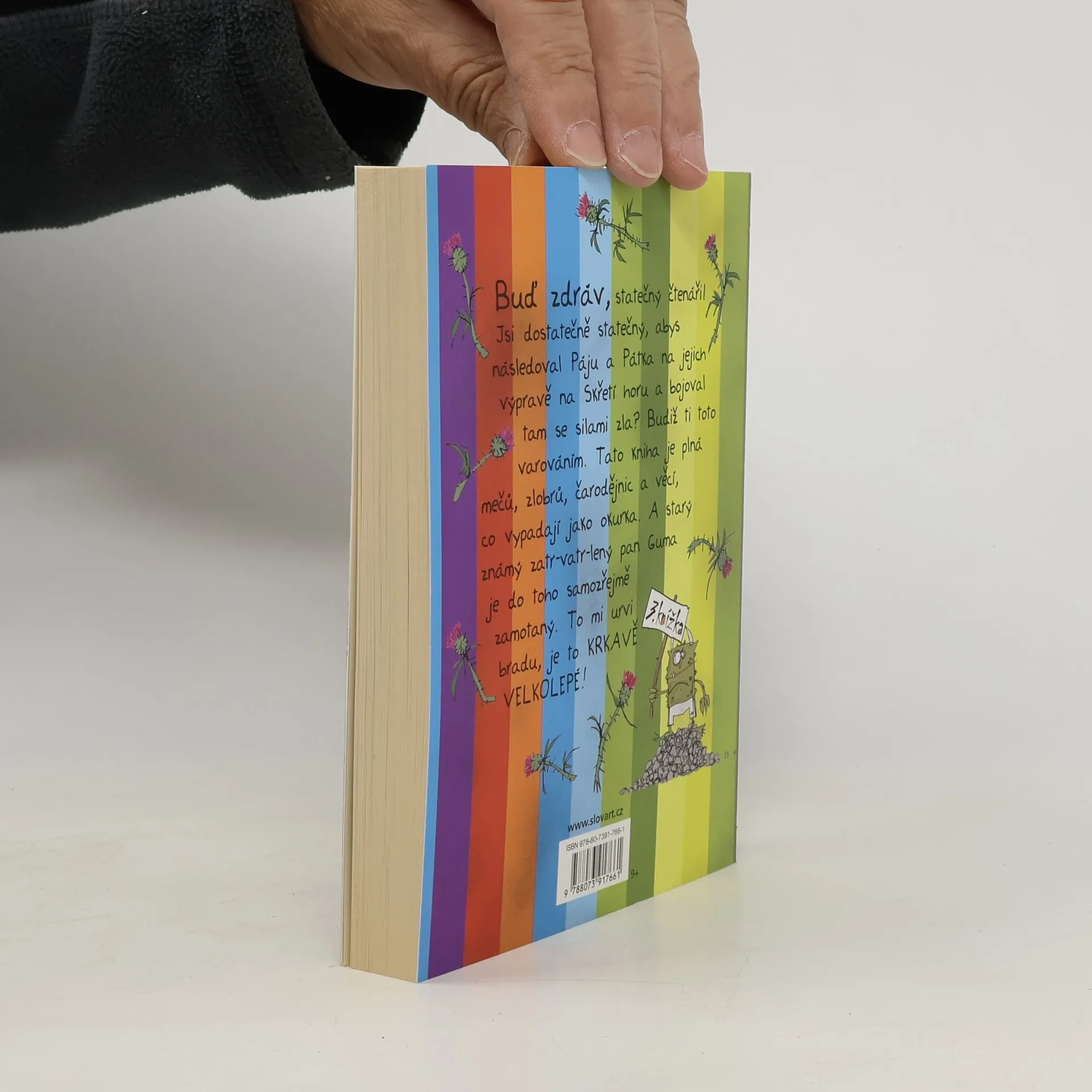 Buď zdráv, statečný čtenáři! Jsi dostatečně statečný, abys následoval Páju a Pátka na jejich výpravě na Skřetí horu a bojoval tam se silami zla? Budiž ti toto varováním. Tato kniha je plná mečů, zlobrů, čarodějnic a věcí, co vypadají jako okurka. A starý známý zatr-vatr-lený pan Guma je do toho samozřejmě zamotaný. To mi urvi bradu, je to krvavě velkolepé!