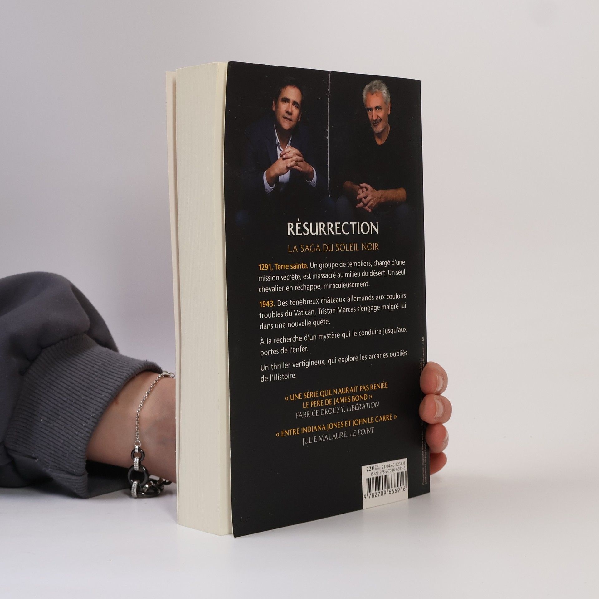 1291, Terre sainte. Un groupe de templiers, chargé d’une mission secrète, est massacré au milieu du désert. Un seul chevalier en réchappe, miraculeusement.1943. Des ténébreux châteaux allemands aux couloirs troubles du Vatican, Tristan Marcas s’engage malgré lui dans une nouvelle quête.À la recherche d’un mystère qui le conduira jusqu’aux portes de l’enfer.Un thriller vertigineux, qui explore les arcanes oubliées de l’histoire.« Une symphonie furieuse qui laisse le lecteur fasciné. » Livres Hebdo« Le duo signe un nouveau thriller trépidant au cœur d’une Europe à feu et à sang.» Paris Match« Superbe roman d’aventures, Résurrection tient ses promesses, le duo Giacometti Ravenne s’entend à merveille pour doser l’imaginaire et le réel » La Dépêche du Midi« Virevoltant de faits réels en rebondissements haletants, le duo réconcilie une fois encore avec bonheur le roman d’aventure et le document historique. » L'Alsace« C’est tellement bien mené et documenté que l’on ne lâche pas le livre, de la première à la dernière page. » Point de vue« Jamais, peut-être, les deux auteurs n’auront fait preuve d’une telle maestria romanesque ni aussi noire… » Sud Ouest