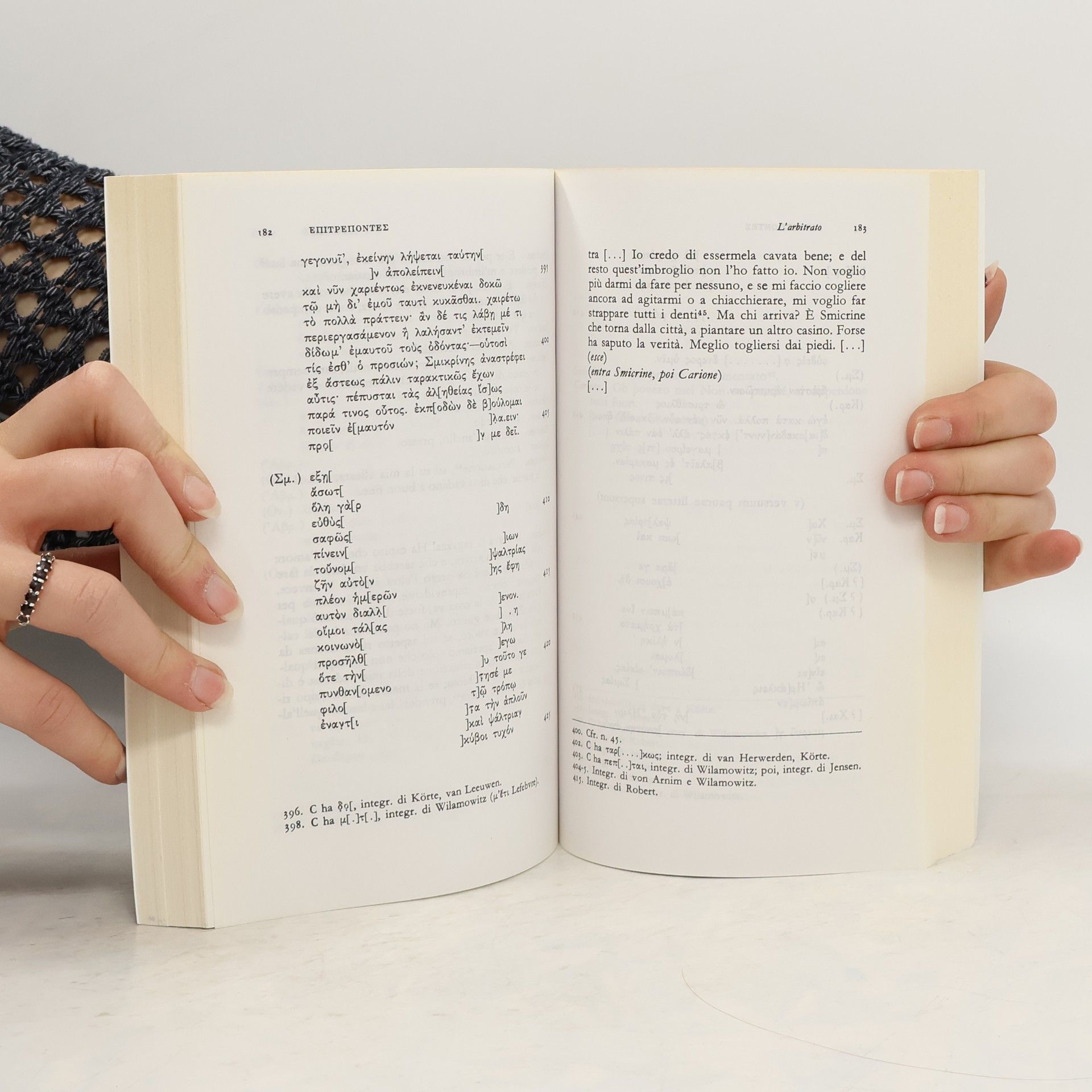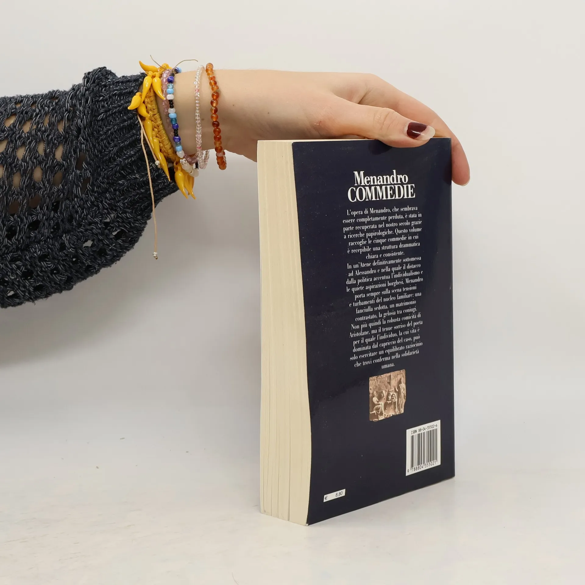 Contiene: Lo scudo, Il misantropo, L'arbitrato, La donna tosata, La donna di Samo Testo greco a fronte L’opera di Menandro, che sembrava essere completamente perduta, è stata in parte recuperata nel nostro secolo grazie a ricerche papirologiche. Questo volume raccoglie le cinque commedie in cui è recepibile una struttura drammatica chiara e consistente. In una Atene definitivamente sottomessa ad Alessandro e nella quale il distacco dalla politica accentua l'individualismo e le quiete aspirazioni borghesi, Menandro porta sempre sulla scena tensioni e turbamenti del nucleo familiare: una fanciulla sedotta, un matrimonio contrastato, la gelosia tra coniugi. Non più quindi la robusta comicità di Aristofane, ma il tenue sorriso del poeta per il quale l’individuo, la cui vita è dominata dal capriccio del caso, può solo esercitare un equilibrato raziocinio che trovi conferma nella solidarietà umana.