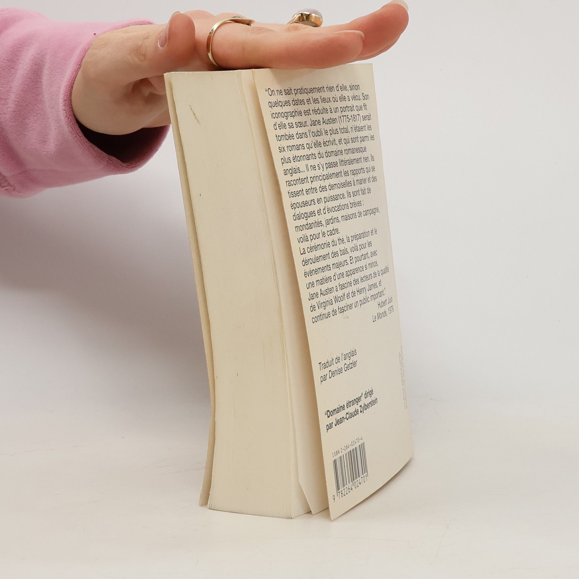 « On ne sait pratiquement rien d'elle, sinon quelques dates et les lieux où elle a vécu. Son iconographie est réduite à un portrait que fit d'elle sa sœur. Jane Austen (1775-1817) serait tombée dans l'oubli le plus total, n'étaient les six romans qu'elle écrivit, et qui sont parmi les plus étonnants du domaine romanesque anglais... Il ne s'y passe littéralement rien. Ils racontent principalement les rapports qui se tissent entre des demoiselles à marier et des épouseurs en puissance. Ils sont fait de dialogues et d'évocations brèves : mondanités, jardins, maisons de campagne, voilà pour le cadre. La cérémonie du thé, la préparation et le déroulement des bals, voilà pour les événements majeurs. Et pourtant, avec une matière d'apparence si mince, Jane Austen a fasciné des lecteurs de la qualité de Virginia Woolf et de Henry James, et continue de fasciner un public important. »