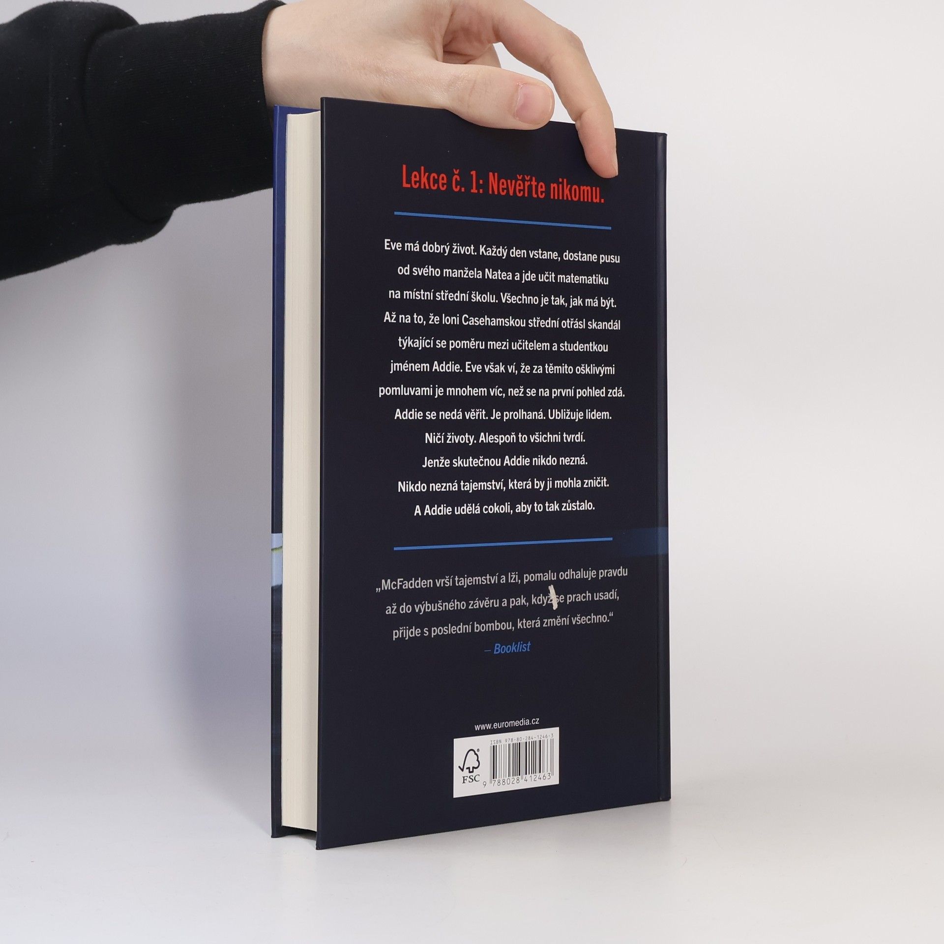 Eve má dobrý život. Každý den vstane, dostane pusu od svého manžela Natea a jde učit matematiku na místní střední školu. Všechno je tak, jak má být. Až na to, že loni casehamskou střední otřásl skandál týkající se poměru mezi učitelem a studentkou jménem Addie. Eve však ví, že za těmito ošklivými pomluvami je mnohem víc, než se na první pohled zdá. Addie se nedá věřit. Je prolhaná. Ubližuje lidem. Ničí životy. Alespoň to všichni tvrdí. Jenže skutečnou Addie nikdo nezná. Nikdo nezná tajemství, která by ji mohla zničit. A Addie udělá cokoli, aby to tak zůstalo.