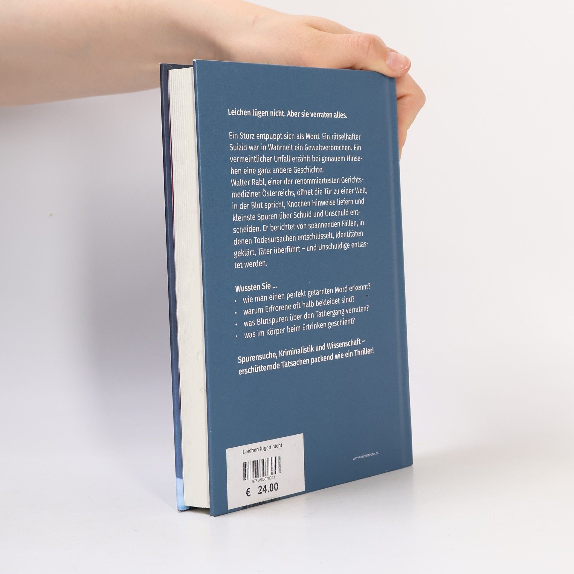 Nach mehr als vier Jahrzehnten Erfahrung als Gerichtsmediziner führt uns Walter Rabl in die Welt von Tatortbegutachtungen, Obduktionen, Toxikologie und vieles mehr. Er lässt uns hinter die Kulissen von Verbrechen blicken und zeigt uns eine Welt, in der kein Detail unbedeutend ist und die Wahrheit oft im Verborgenen liegt. Gemeinsam mit der Autorin Birgit Kofler-Bettschart klärt er gängige Mythen und Irrtümer über sein Fach auf, erklärt anhand oft tragischer Fälle die wissenschaftlichen Methoden seiner faszinierenden Disziplin und beschreibt anschaulich, wie die Gerichtsmedizin unklare Todesfälle entschlüsselt, Identitäten klärt, Täter überführt und Unschuldige entlastet. Fälle, die unter die Haut gehen: • Die Gerichtsmedizin Innsbruck konnte mithilfe einer DNA-Analyse von Leichenteilen feststellen, dass es sich dabei um Günther Messner, den Bruder der Berglegende Reinhold Messner handelt. Er kam bei einem Unglück am Nanga Parbat im Jahr 1970 ums Leben. • Langjährige Rätsel um gekrönte Häupter konnten dank moderner forensischer Methoden aufgeklärt werden. So wurden gefundene Knochen mittels DNA-Analyse den seit 1918 vermissten Zarenkindern Romanow zugeordnet. • u.v.m.