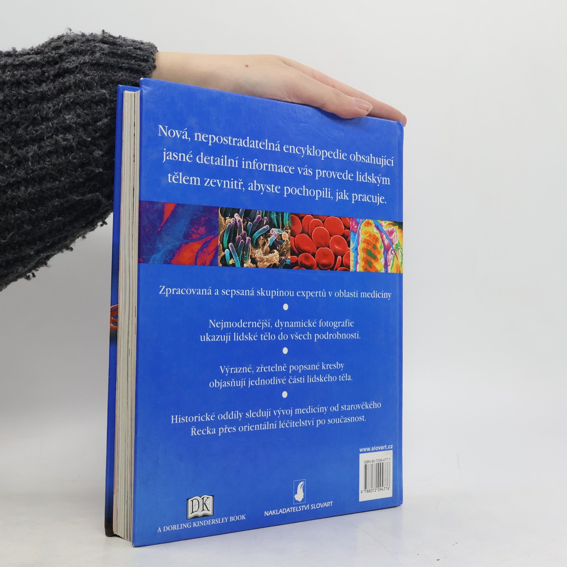 Nová encyklopedie obsahující jasné, detailní informace usnadňující porozumění fungování lidského těla. Napsáno týmem odborníků. Dynamické, nejmodernější fotografie odhalují lidské tělo v detailních záběrech. Příběh fascinující historie medicíny od antického Řecka po současnost.
