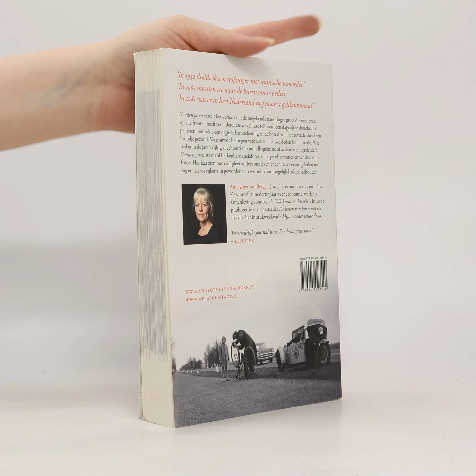 `In 1952 deelde ik een stofzuiger met mijn schoonmoeder. `In 1961 zond de televisie 24 uur uit per week. `In 1965 moesten we naar de buren om te bellen. Gouden jaren vertelt het verhaal van de ongekende naoorlogse groei die ons leven op alle fronten heeft veranderd. De wekelijkse teil werd een dagelijkse douche, het papieren loonzakje een digitale bankrekening en de boterham met tevredenheid een broodje gezond. Vertrouwde beroepen verdwenen, nieuwe deden hun intrede. Wie had er in de jaren vijftig al gehoord van mondhygiëniste of activiteitenbegeleider? Gouden jaren staat vol met herkenbare anekdotes, scherpe observaties en schitterende foto s. Het laat zien hoe compleet anders ons leven er een halve eeuw geleden uitzag en dat we rijker zijn geworden dan we ooit voor mogelijk hadden gehouden.