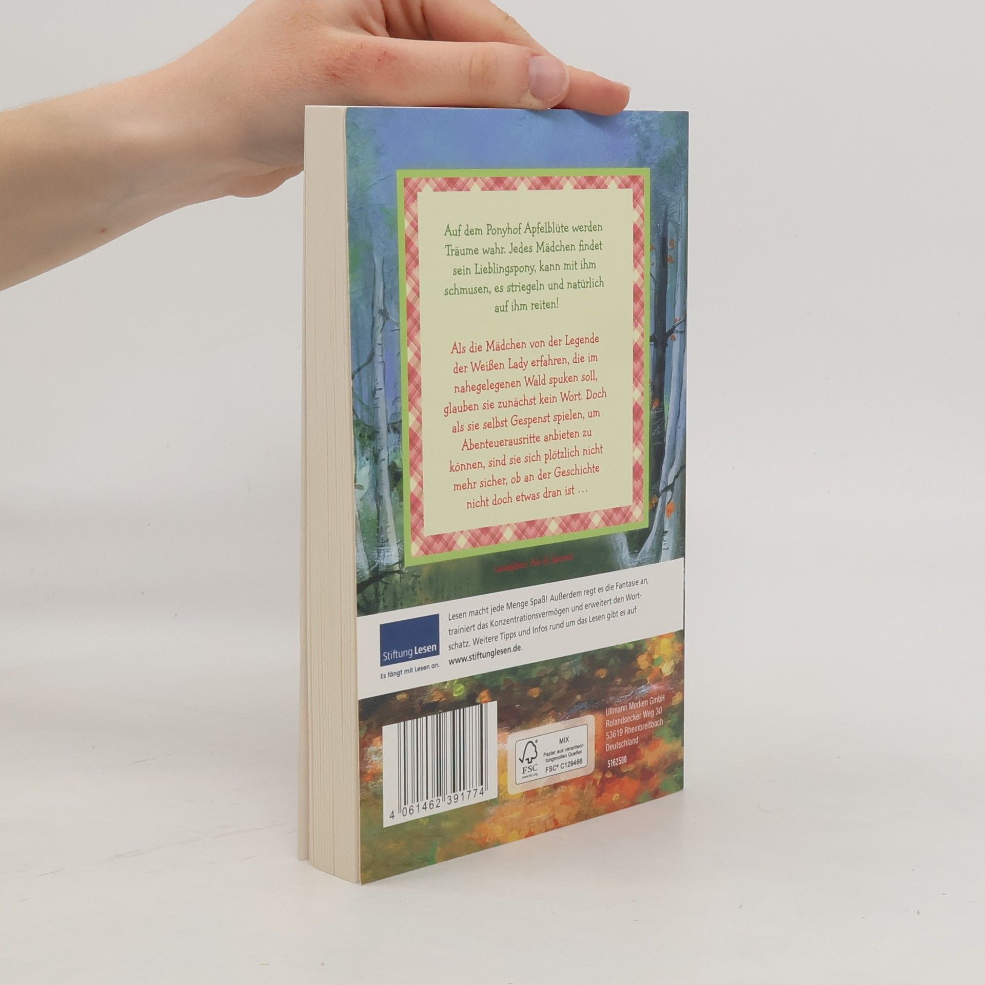 Auf dem Ponyhof Apfelblüte werden Träume wahr. Jedes Mädchen findet sein Lieblingspony, kann mit ihm schmusen, es striegeln und natürlich auf ihm reiten!Als die Mädchen von der Legende der Weißen Lady erfahren, die im nahegelegenen Wald spuken soll, glauben sie kein Wort. Doch als sie selbst Gespenst spielen, um Abenteuerausritte anbieten zu können, sind sie sich plötzlich nicht mehr sicher, ob an der Geschichte nicht doch etwas dran ist ...Freundschaften, süße Ponys und spannende Wettkämpfe – der Alltag auf dem Reiterhof wird einfach nie langweilig. Die Kinderbuchreihe mit vielen liebevollen Illustrationen vermittelt nebenbei Wissenswertes über Ponys und ist besonders für Mädchen ab 8 Jahren geeignet.