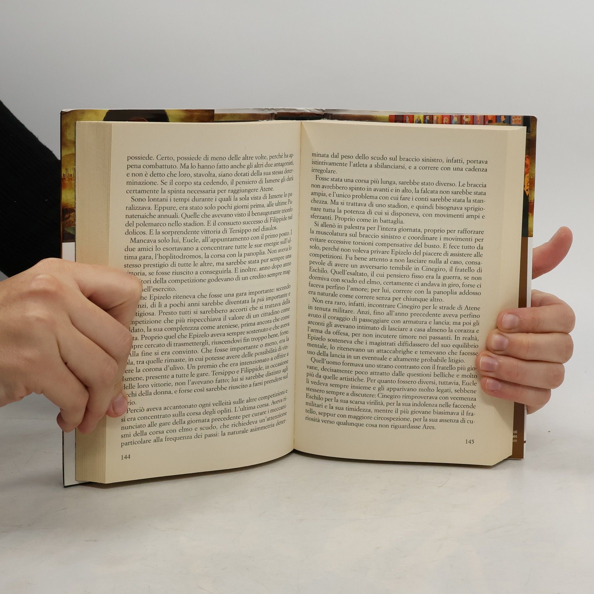 480 a.C. La flotta greca attende con ansia di conoscere l’esito della battaglia che si combatte alle Termopili, tra gli uomini del gran re Serse e i 300 eroi guidati da Leonida. Su una delle navi, Eschilo, in servizio come oplita, riceve la visita di una donna misteriosa, che gli racconta la sua personale versione della battaglia di Maratona, alla quale lo stesso poeta aveva partecipato dieci anni prima. I ricordi dei due interlocutori si intrecciano per ricostruire le verità mai raccontate del primo combattimento campale tra greci e persiani, ma soprattutto quel che accadde subito dopo, quando gli araldi dovettero correre ad Atene per comunicare la vittoria greca, prima che i sostenitori dei persiani aprissero le porte agli invasori. Narrato in tempo reale, Marathon è la potente e incalzante cronaca di una battaglia e di una corsa: una corsa in cui i tre protagonisti mettono in gioco la loro amicizia e la loro stessa vita, per disputarsi l’amore di una donna, ma anche per scoprire i limiti delle loro ambizioni, in una sfida che cresce d’intensità fino al sorprendente epilogo.