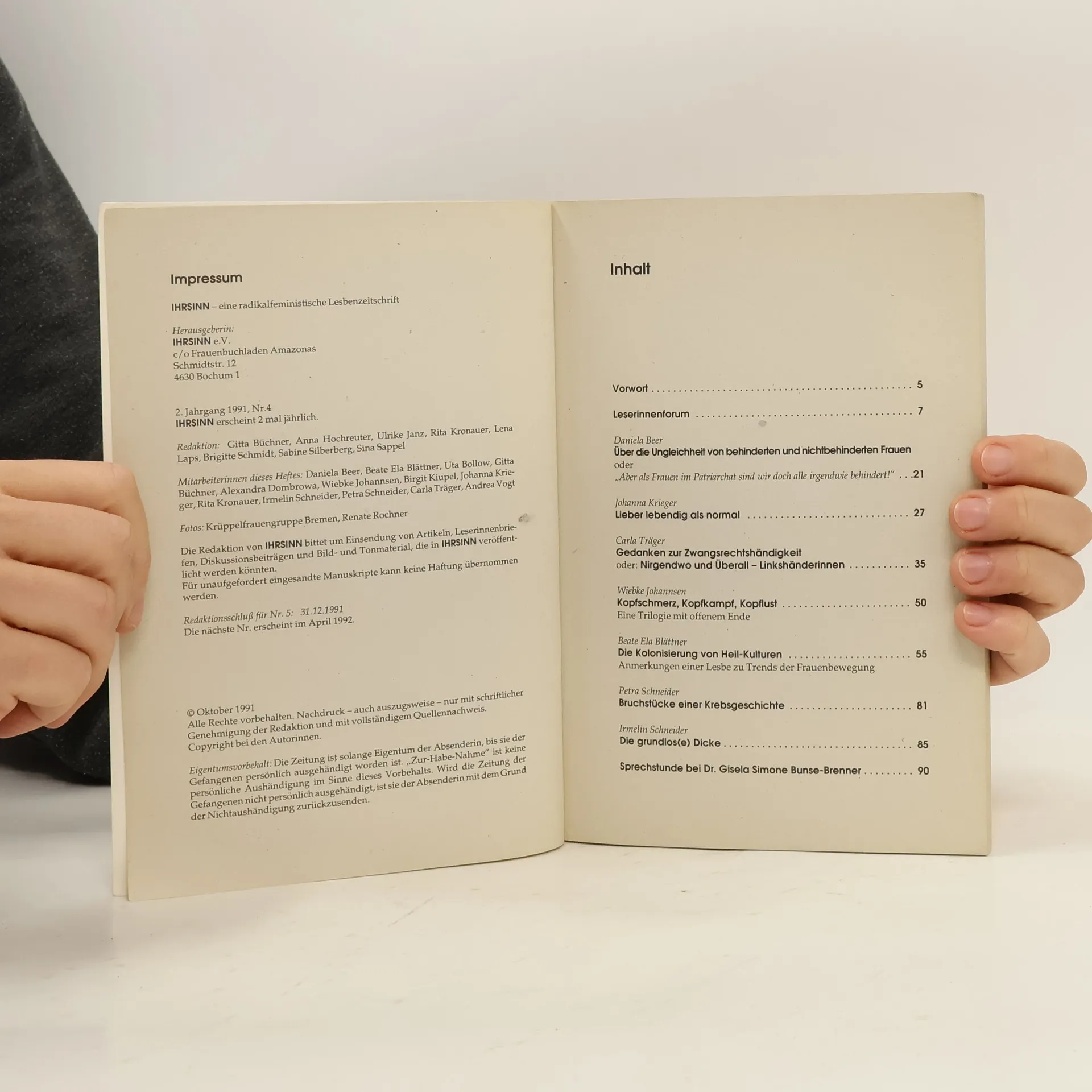 Ihrsinn. Eine Radikalfeministische Lesbenzeitschrifft 4/91, Kolektív autorov
