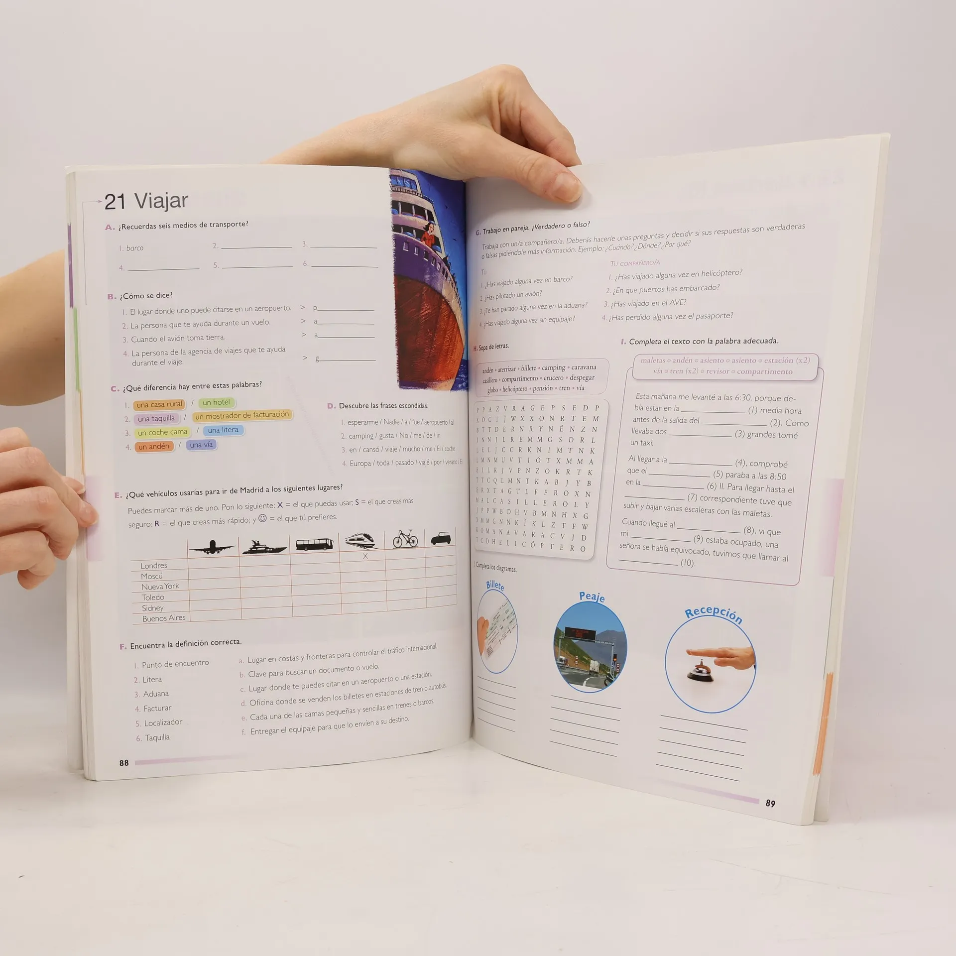 Más de 1000 palabras básicas ilustradas y organizadas por temas, para aprender español con actividades para practicar el vocabulario que se presenta. Consta de 22 unidades. Al final del libro hay un solucionario, asi como un glosario de las palabras ilustradas traducidas a 5 idiomas.