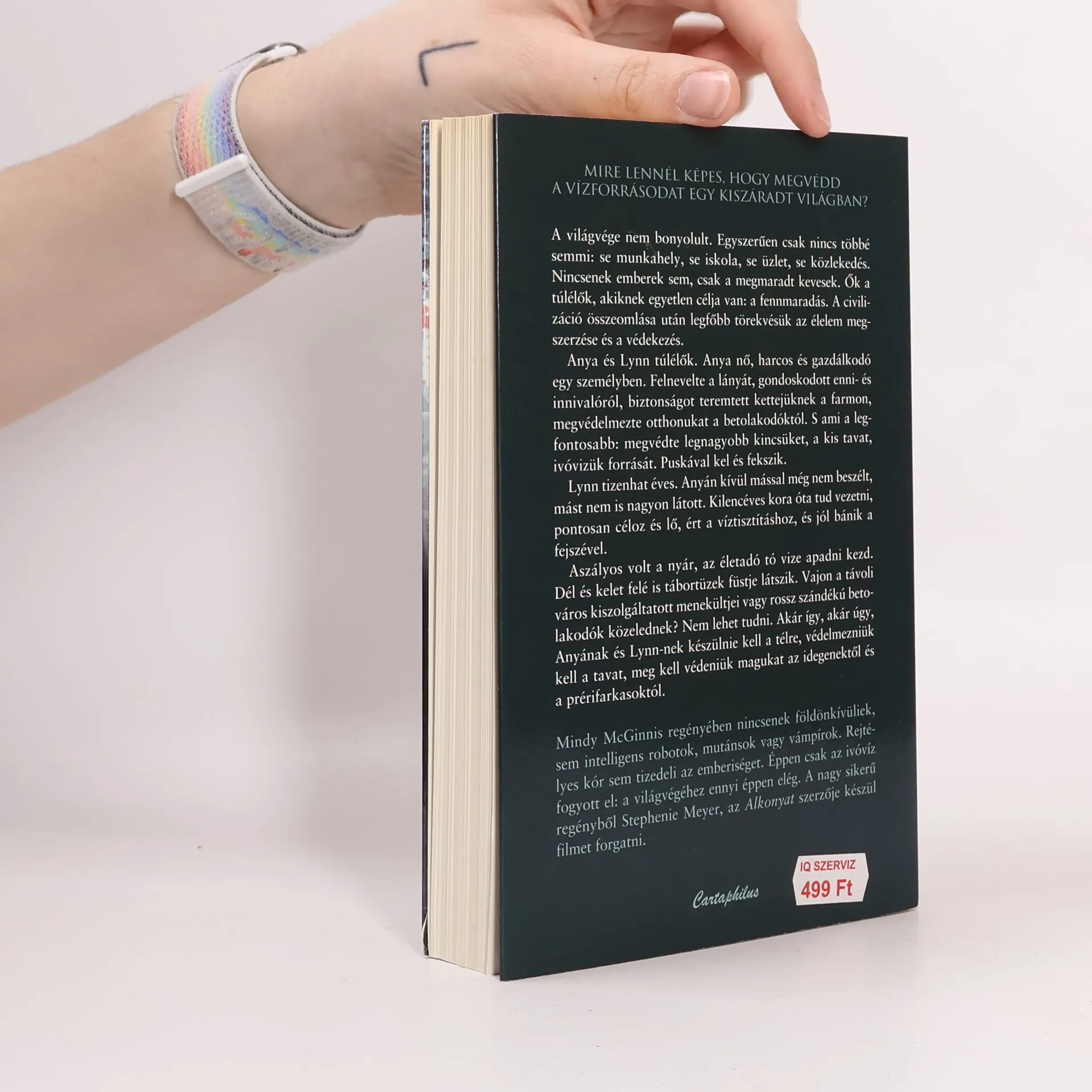 Mire ​lennél képes, hogy megvédd a vízforrásodat egy kiszáradt világban? A világvége nem bonyolult. Egyszerűen csak nincs többé semmi: se munkahely, se iskola, se üzlet, se közlekedés. Nincsenek emberek sem, csak a megmaradt kevesek. Ők a túlélők, akiknek egyetlen célja van: a fennmaradás. A civilizáció összeomlása után legfőbb törekvésük az élelem megszerzése és a védekezés. Anya és Lynn túlélők. Anya nő, harcos és gazdálkodó egy személyben. Felnevelte a lányát, gondoskodott enni és innivalóról, biztonságot teremtett kettejüknek a farmon, megvédelmezte otthonukat a betolakodóktól. S ami a legfontosabb: megvédte legnagyobb kincsüket, a kis tavat, ivóvizük forrását. Puskával kel és fekszik. Lynn tizenhat éves. Anyán kívül mással még nem beszélt, mást nem is nagyon látott. Kilencéves kora óta tud vezetni, pontosan céloz és lő, ért a víztisztításhoz, és jól bánik a fejszével. Aszályos volt a nyár, az életadó tó vize apadni kezd. Dél és kelet felé is tábortüzek füstje látszik. Vajon a távoli város kiszolgáltatott menekültjei vagy rossz szándékú betolakodók közelednek? Nem lehet tudni. Akár így, akár úgy, Anyának és Lynn-nek készülnie kell a télre, védelmezniük kell a tavat, meg kell védeniük magukat az idegenektől és a prérifarkasoktól. Mindy McGinnis regényében nincsenek földönkívüliek, sem intelligens robotok, mutánsok vagy vámpírok. Rejtélyes kór sem tizedeli az emberiséget. Éppen csak az ivóvíz fogyott el: a világvégéhez ennyi éppen elég. A nagysikerű regényből Stephenie Meyer, az Alkonyat szerzője készül filmet forgatni.