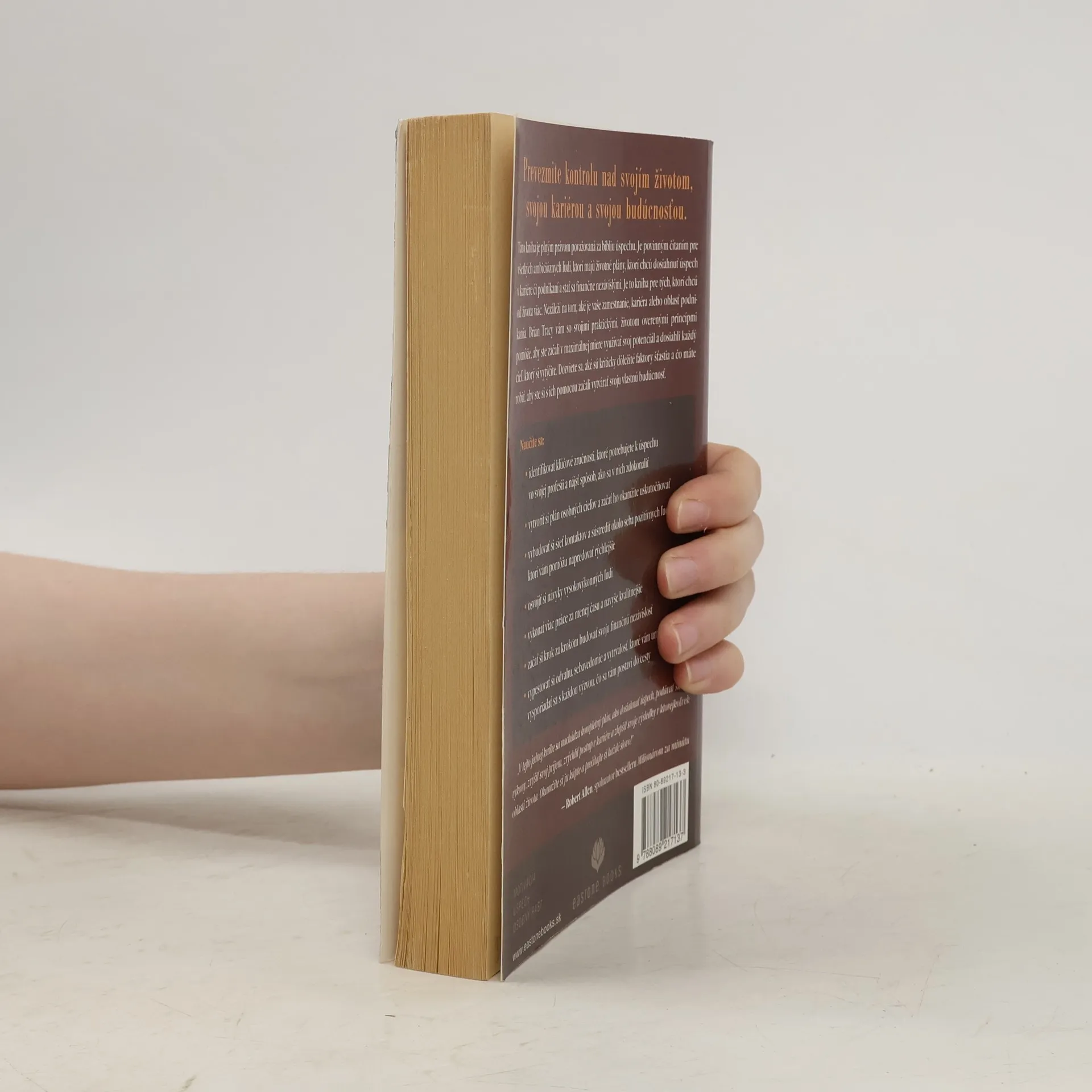 Táto kniha je plným právom považovaná za bibliu úspechu. Je povinným čítaním pre všetkých ambicióznych ľudí, ktorí majú životné plány, ktorí chcú dosiahnuť úspech v kariére či podnikaní a stať sa finančne nezávislými. Je to kniha pre tých, ktorí chcú od života viac. Nezáleží na tom, aké je vaše zamestnanie, kariéra alebo oblasť podnikania. Brian Tracy vám so svojimi praktickými, životom overenými princípmi pomôže, aby ste začali v maximálnej miere využívať svoj potenciál a dosiahli každý cieľ, ktorý si vytýčite. Dozviete sa, aké sú kriticky dôležité faktory šťastia a čo máte robiť, aby ste si s ich pomocou začali vytvárať svoju vlastnú budúcnosť. Naučíte sa: * identifikovať kľúčové zručnosti, ktoré potrebujete k úspechu vo svojej profesii a nájsť spôsob, ako sa v nich zdokonaliť * vytvoriť si plán osobných cieľov a začať ho okamžite uskutočňovať * vybudovať si sieť kontaktov a sústrediť okolo seba pozitívnych ľudí, ktorí vám pomôžu napredovať rýchlejšie * osvojiť si návyky vysokovýkonných ľudí * vykonať viac práce za menej času a navyše kvalitnejšie * začať si krok za krokom budovať svoju finančnú nezávislosť * vypestovať si odvahu, sebavedomie a vytrvalosť, ktoré vám umožnia vysporiadať sa s každou výzvou, čo sa vám postaví do cesty Podrobnosti