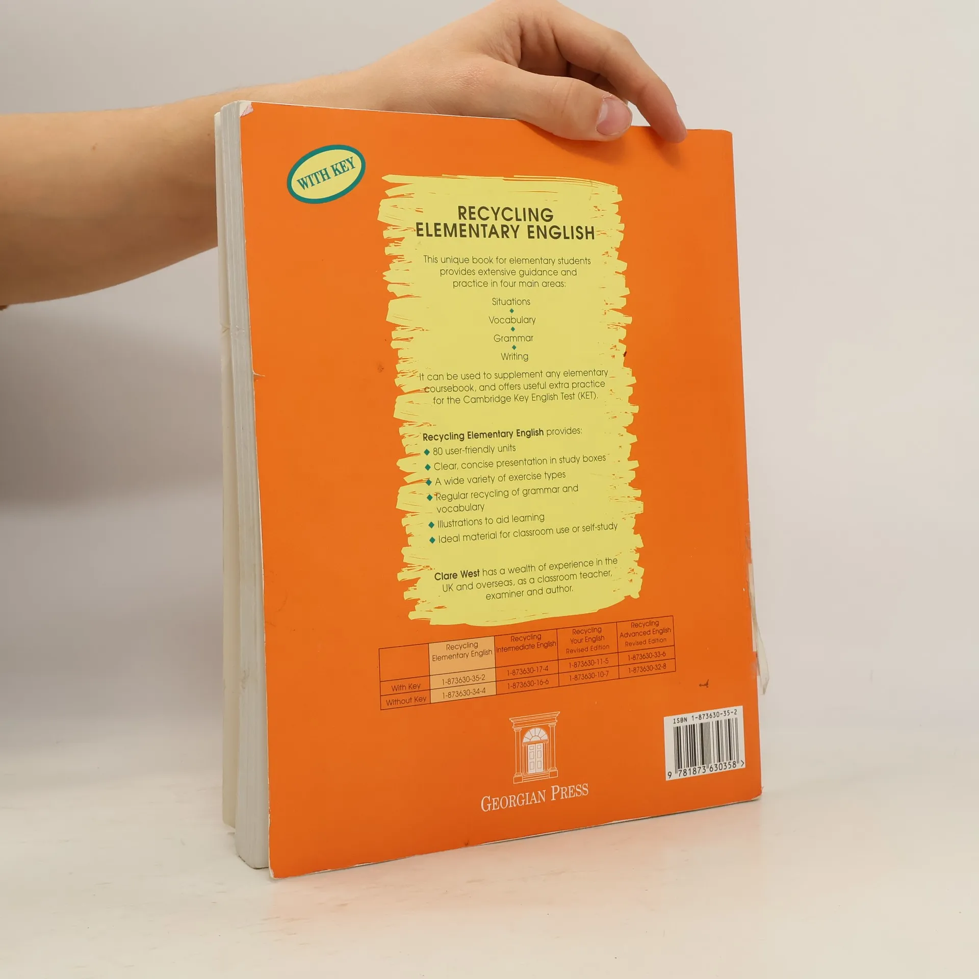 A series of four books that provide extensive guidance and English practice in key areas of the language. The first in the popular series of four workbooks by the same author, this book provides revision and practice in four main areas: Situations, Vocabulary, Grammar and Writing. Recycling Elementary English can be used to supplement any elementary coursebook, and offers useful extra practice for the Cambridge Key English Test (KET), and the Skills for Life Entry 2 examination. This edition contains an answer key.