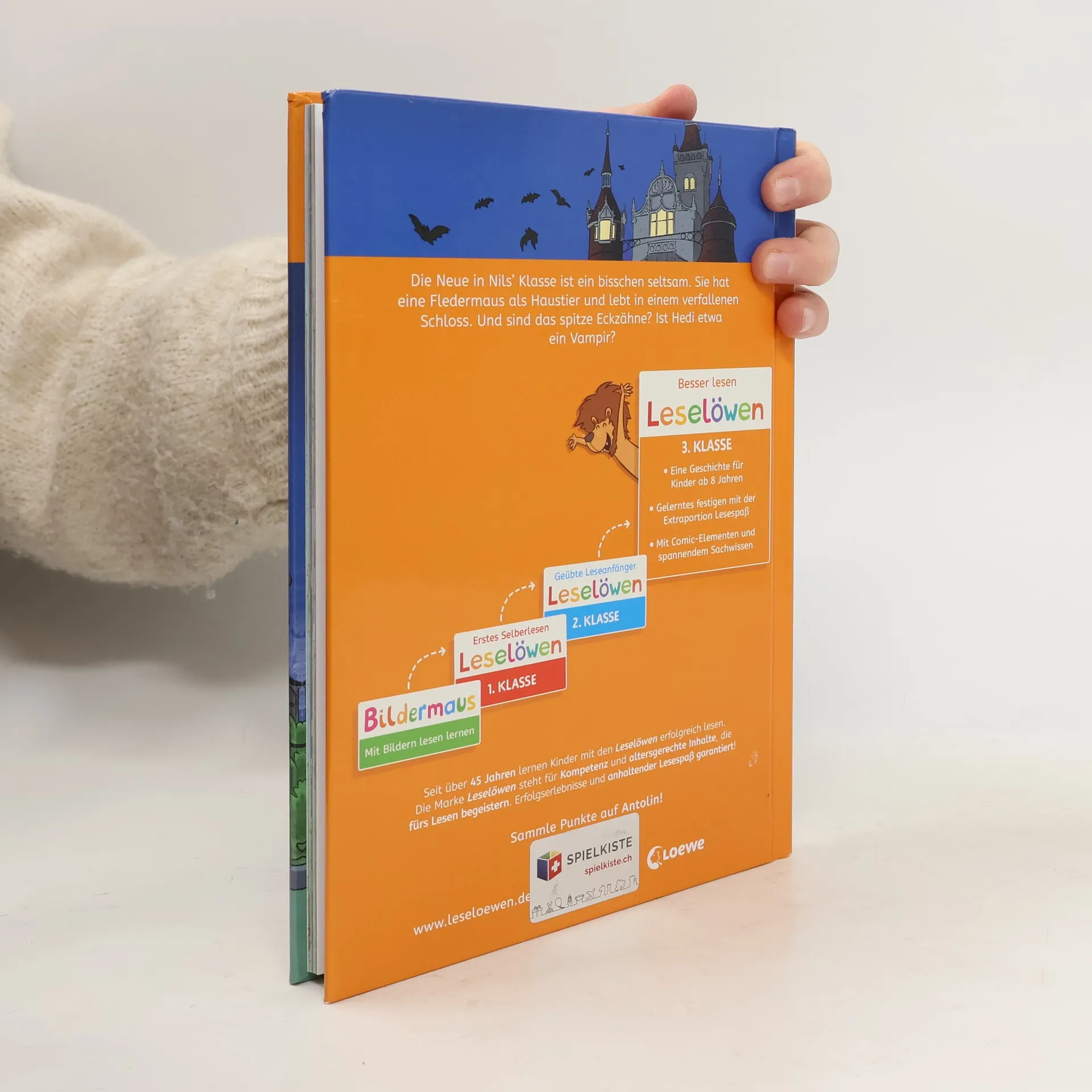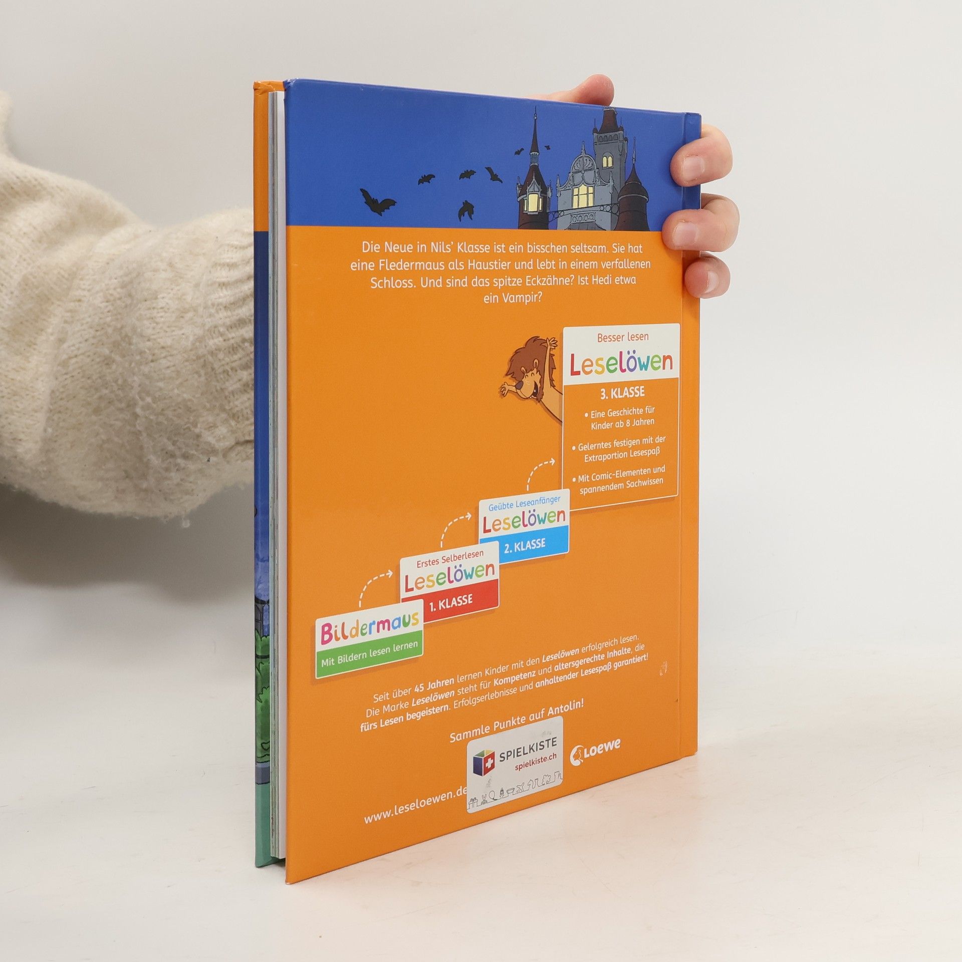 Die Neue in Nils’ Klasse ist ein bisschen seltsam. Sie hat eine Fledermaus als Haustier und lebt in einem verfallenen Schloss. Und sind das spitze Eckzähne? Ist Hedi etwa ein Vampir? Schenken Sie Ihrem Kind das bewährte Erfolgskonzept zum Lesenlernen. Eine tolle Geschichte um die Freundschaft zwischen einem Jungen und einem Vampir mädchen Ideal für alle Drittklässler*innen, die beim Lesen noch Unterstützung benötigen Kurze Texte , Comic-Elemente und spannende Gestaltung für mehr Spaß am Lesen Spannende Geschichte mit überraschender Auflösung Seit über 45 Jahren lernen Kinder mit den Leselöwen erfolgreich lesen Über 29 Millionen verkaufte Exemplare – Die Nr. 1 in Deutschland, Österreich und der Schweiz Spannende Geschichten für geübte Leseanfänger*innen , unverzichtbar zum Lesenlernen mit Spaß Von Lehrkräften mitentwickelt und empfohlen , von Grundschüler*innen getestet Einfache , kurze Sätze in großer Fibelschrift unterstützen optimal den Leselern-Prozess Genau auf die Interessen und Lesefähigkeiten von Grundschüler*innen ausgerichtet Mit Frage - und Übungsteil zur Förderung des Textverständnisses Inklusive spannendem „Schon gewusst“-Sachwissen Abwechslungsreiche Quizfragen auf Antolin steigern die Lesemotivation