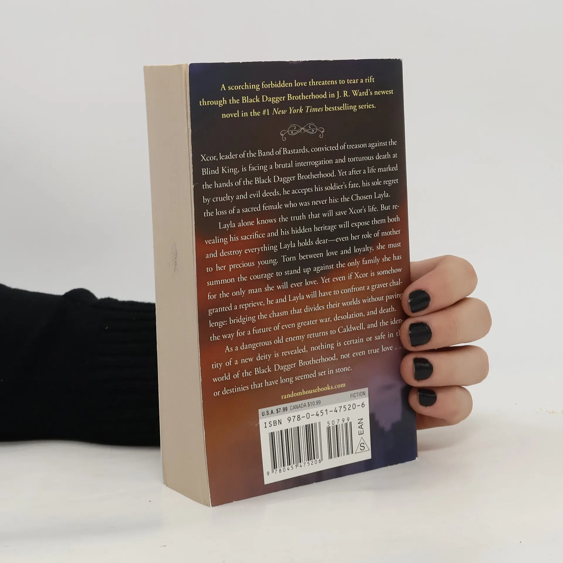 Xcor, leader of the Band of Bastards, convicted of treason against the Blind King, is facing a brutal interrogation and torturous death at the hands of the Black Dagger Brotherhood. Yet after a life marked by cruelty and evil deeds, he accepts his soldier’s fate, his sole regret the loss of a sacred female who was never his: the Chosen Layla. Layla alone knows the truth that will save Xcor’s life. But revealing his sacrifice and his hidden heritage will expose them both and destroy everything Layla holds dear—even her role of mother to her precious young. Torn between love and loyalty, she must summon the courage to stand up against the only family she has for the only man she will ever love. Yet even if Xcor is somehow granted a reprieve, he and Layla would have to confront a graver challenge: bridging the chasm that divides their worlds without paving the way for a future of even greater war, desolation, and death. As a dangerous old enemy returns to Caldwell, and the identity of a new deity is revealed, nothing is certain or safe in the world of the Black Dagger Brotherhood, not even true love... or destinies that have long seemed set in stone.