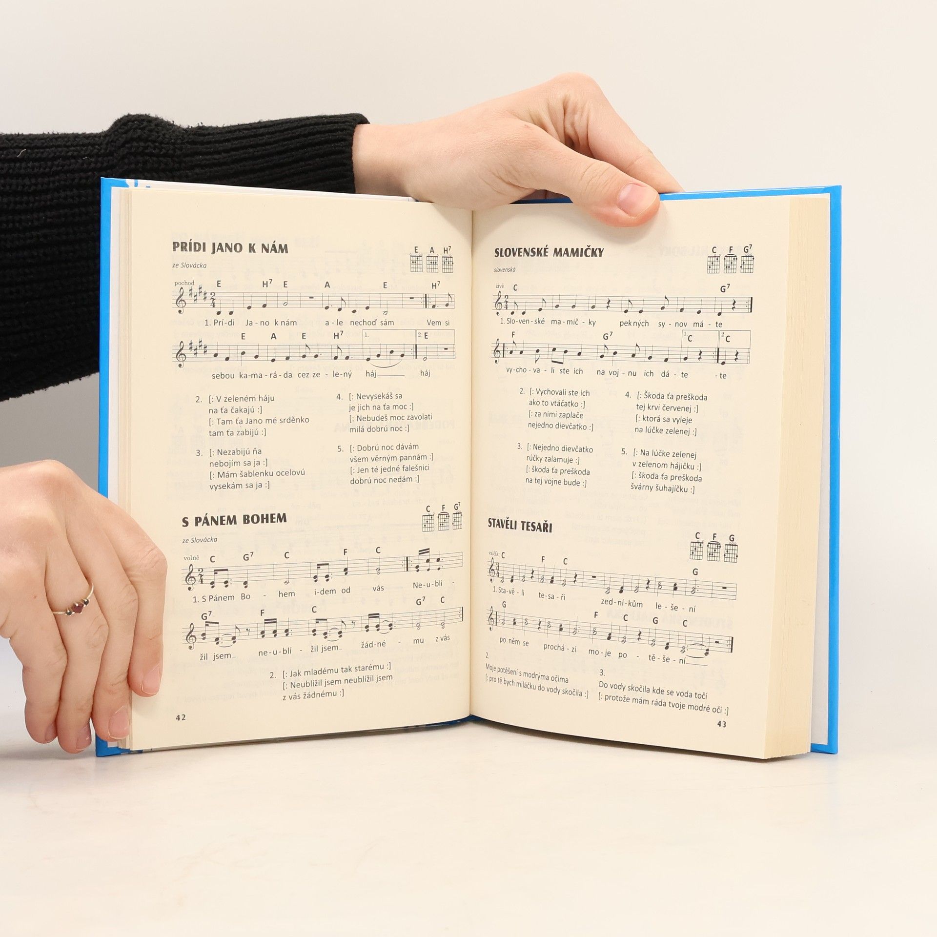 České, moravské a slovenské lidové -- Lidové z celého světa: Až se k nám právo vrátí ; Cestářská ; Čert ví, kdy kotvy zvednem ; Dobrodružství s bohem Panem ; Gaudeamus Igitur ; Oh, Freedom ; Tři tamboři ; Už koníček pádí ; Za svou pravdou spát -- Na lidovou notu: Jízda králů ; Putovali kdysi hudci ; Ty falešná frajárko ; Vltavo, Vltavo -- Koledy a vánoční písně: Bratři, já jsem slyšel z nebe hlas ; Chtěl jsem píct koláče ; Vánoce v Ďáblicích -- Trampské, folkové a country: Až vzlétnou ptáci ; Až ztichnou bílé skály ; Báječná ženská ; Bodláky ve vlasech ; Hejno vran ; Hledám děvče na neděli ; Laciný víno ; Mys Horn ; Na věky tu přeci nejsi ; Whisky to je moje gusto ; Zítra ráno v pět ; Zrádný banjo -- Pop, rock: Bon Soir mademoiselle Paris ; Boty proti lásce ; Den je krásný ; Hej Jude ; Jasná zpráva ; Ten umí to a ten zas tohle -- Jazz, swing: Blues na cestu poslední ; Dívka s modrou matrací ; Já bych si rád najal dům ; Jen pro ten dnešní den ; Lízátko ; Slunečnice -- Klasika, opereta: Bábinčin maršovský valčík ; Blondýnky sladké ; Česká píseň ; Solvejgina píseň -- Hymny