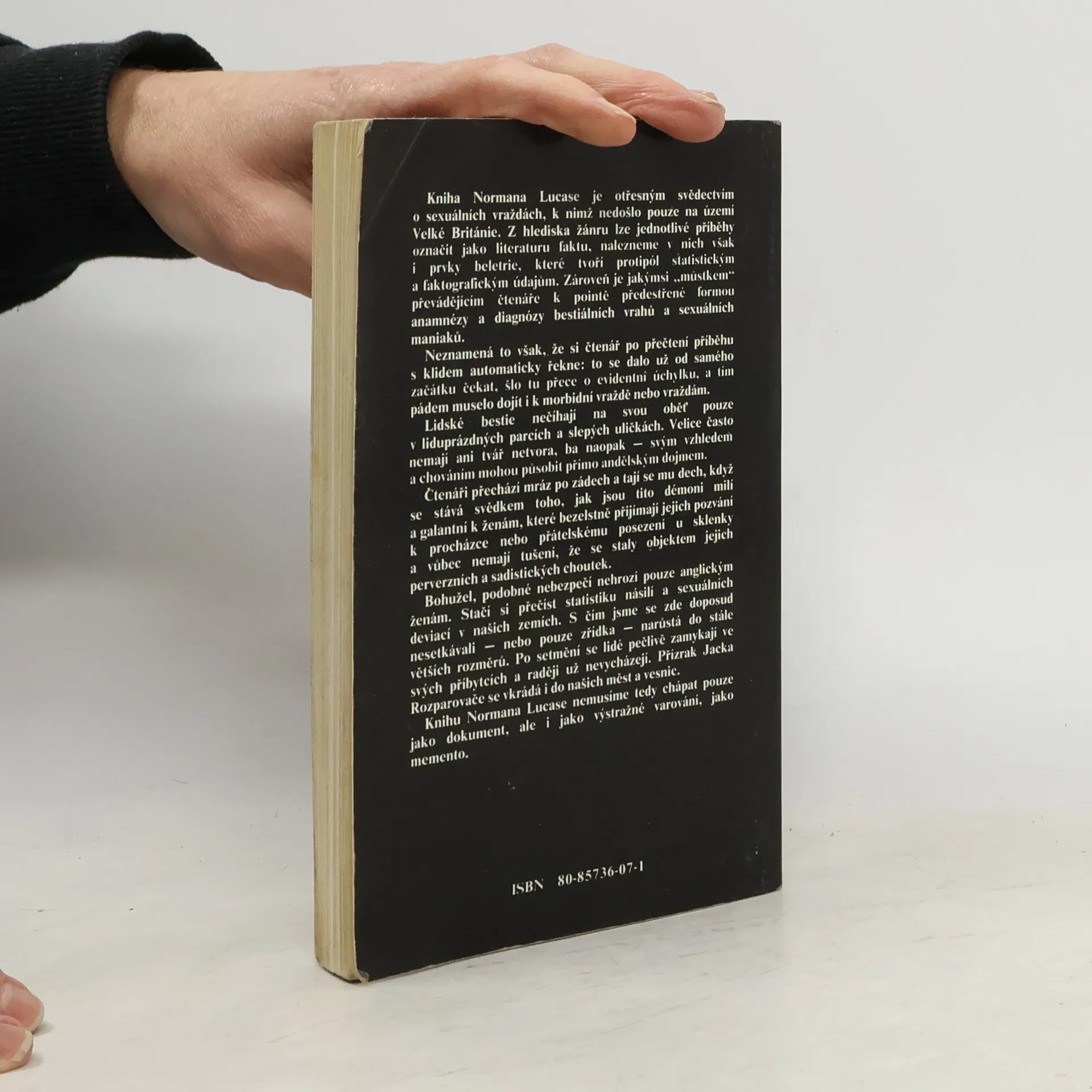 Kniha Normana Lucase je otřesným svědectvím o sexuálních vraždách, k nimž nedošlo pouze na území Velké Británie. Z hlediska žánru lze jednotlivé příběhy označit jako literaturu faktu, nalezneme v nich však i prvky beletrie, které tvoří protipól statistickým a faktografickým údajům. Zárověň je jakýmsi "můstkem" převádějícím čtenáře k pointě předestřené formou anamnézy a diagnózy vrahů a sexuálních maniaků.
